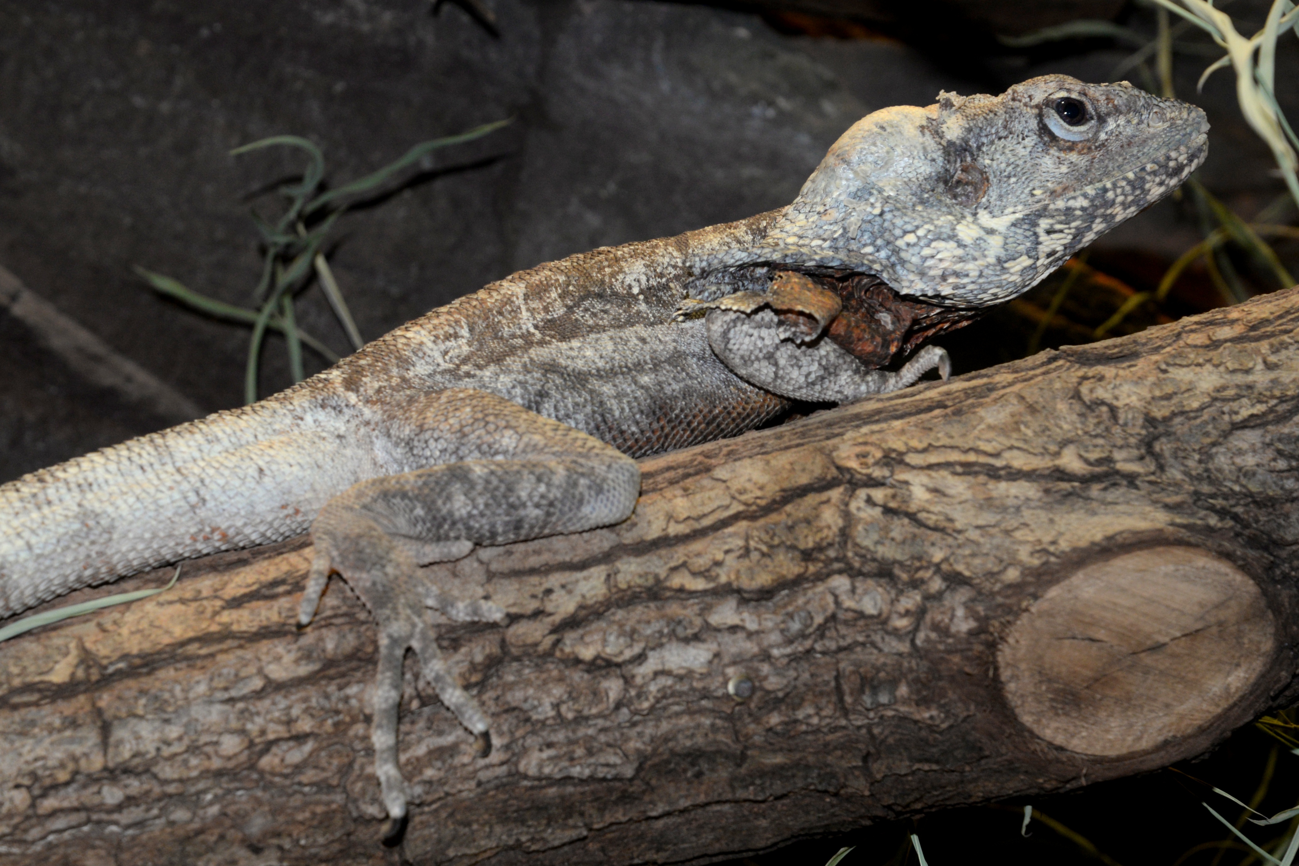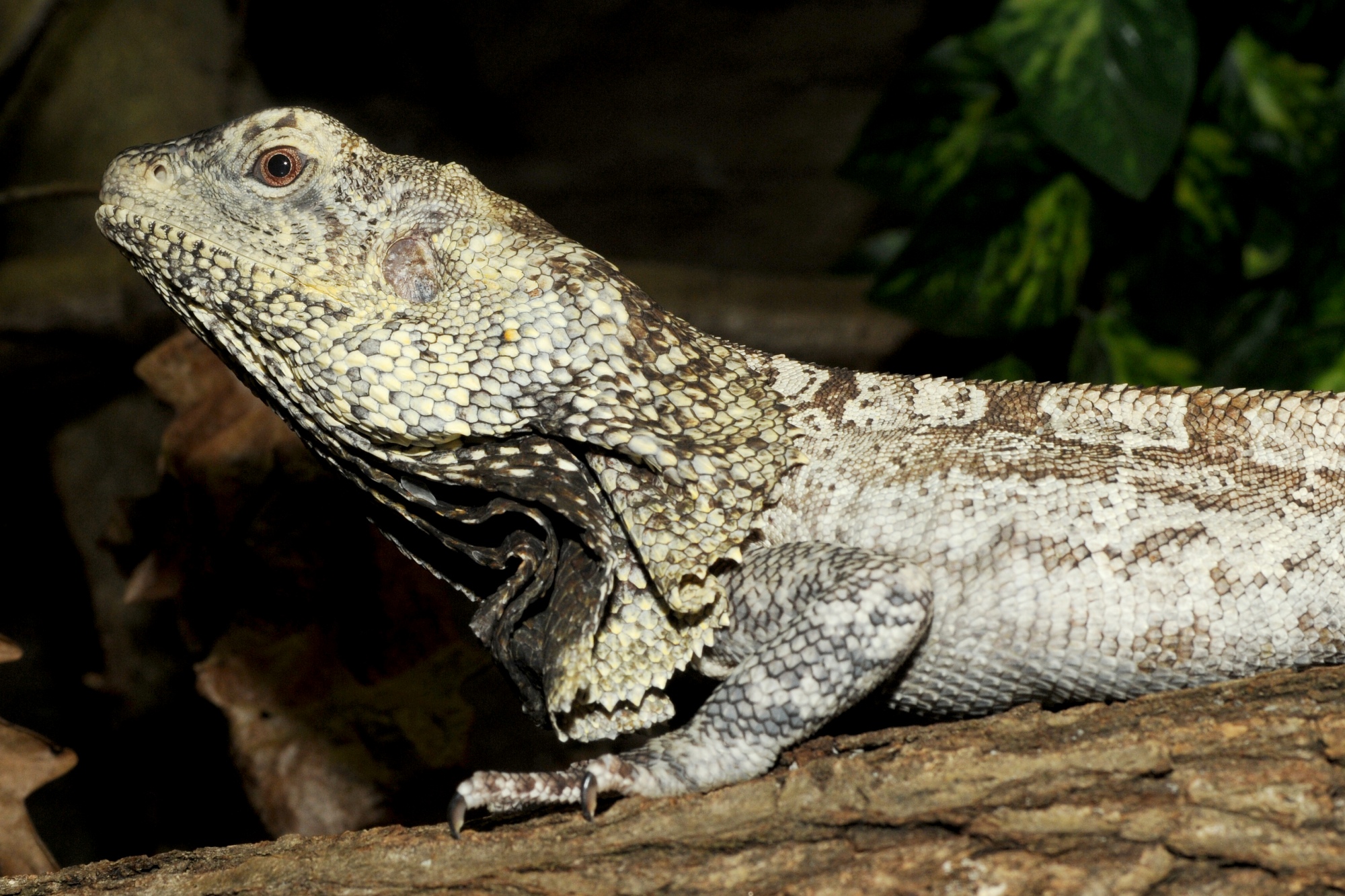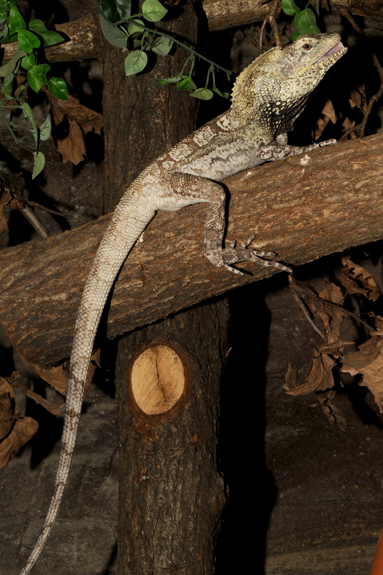 Při vyrušení roztahuje velký kožovitý límec, je to strategie, která má za účel odradit případného útočníka tím, že se z drobného ještěra opticky náhle stane mnohem větší zvíře. Pokud tato taktika nepomůže, dokáže se vztyčit a vydat se na rychlý útěk jen po zadních nohách.Límec používají samci i při imponování a vzájemných soubojích. Dožívá se 8 - 10 let.