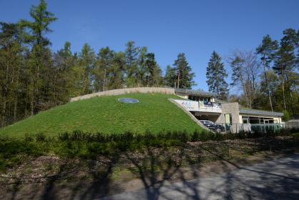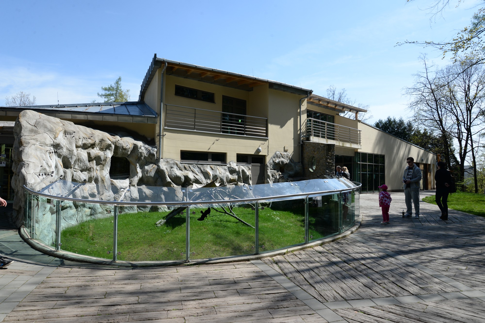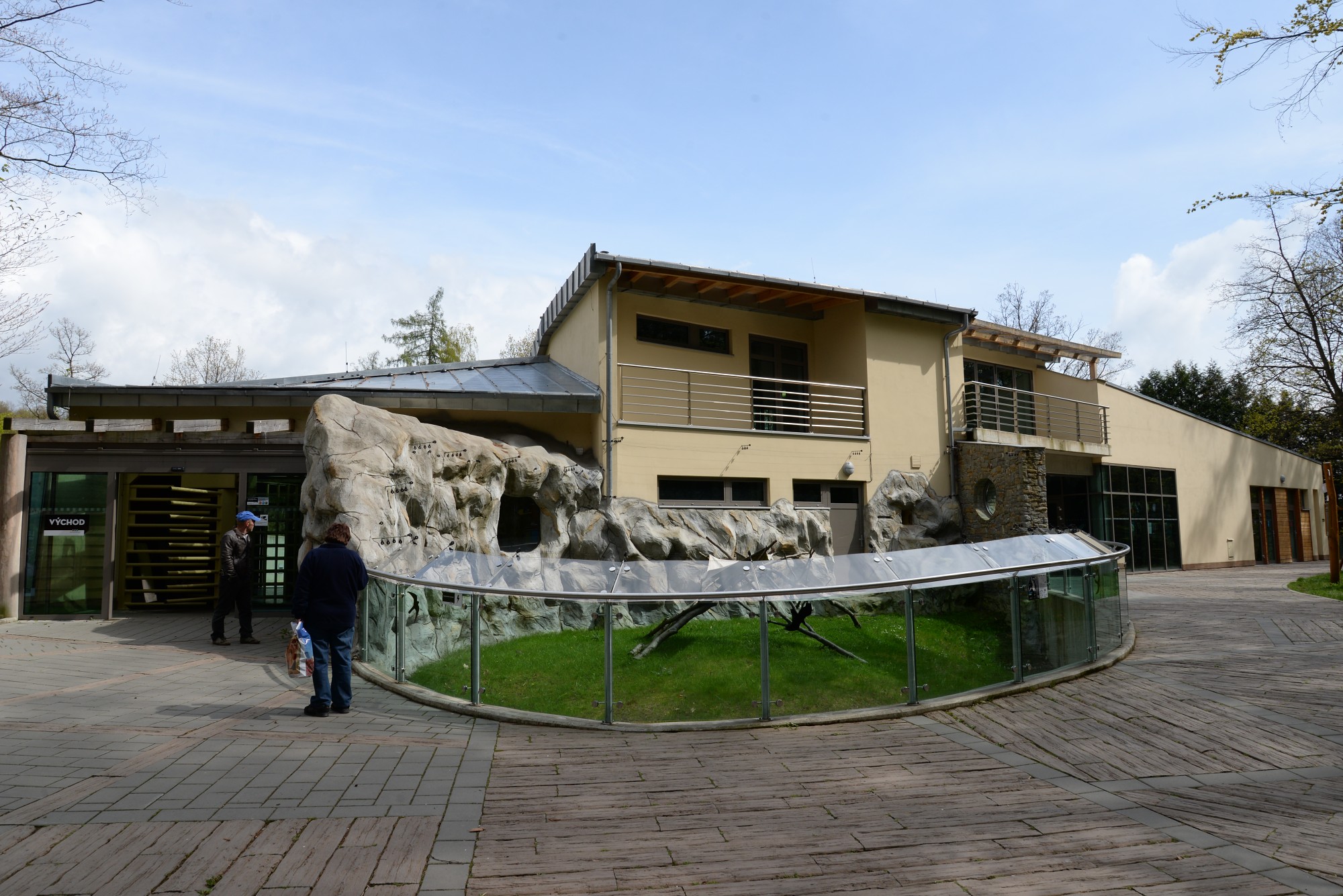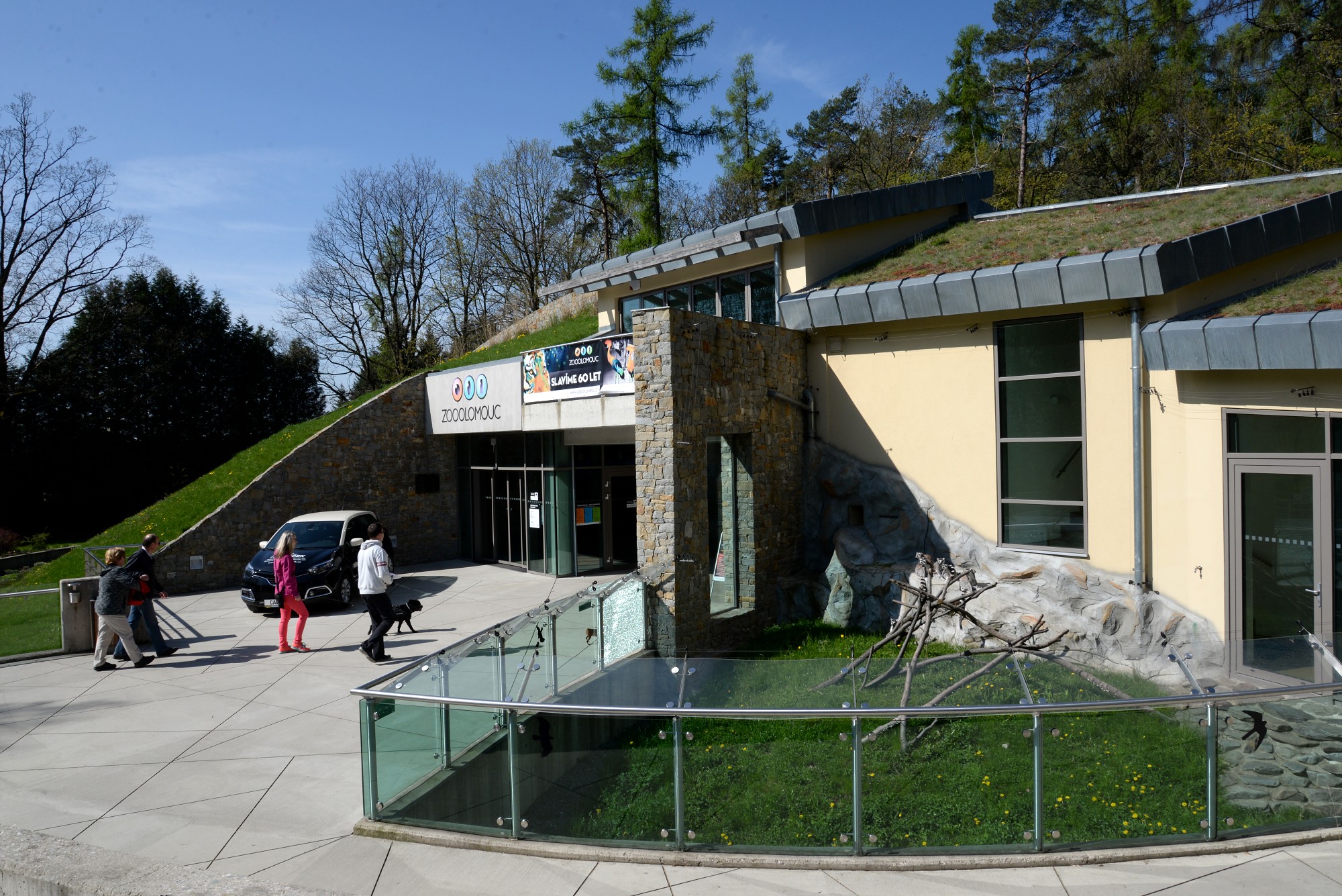 Nová budova "Centra pro chov lemurů kata a vstupu do zoo" má symbolizovat Svatý Kopeček. Zelený kopec na první pohled nepřipomíná budovu, díky travnatému porostu totiž přirozeně splývá s okolní přírodou. Cílem této stavby je nejen prezentace nového druhu primátů - lemurů kata, ale také rychlejší a komfortnější odbavení návštěvníků. V levém křídle se nalézá reprezentativní vstupní prostor s pokladnami, velkým mořským akváriem, galerií a moderní tiskové centrum. Pravé křídlo ukrývá výzkumné centrum lemurů kata, jejich chovatelské zázemí i východ ze zoo. Součástí pravé části budovy jsou i dva venkovní výběhy, z nichž menší se nachází ještě před vstupem a je volně přístupný všem kolemjdoucím lidem, druhý je umístěný již v areálu zoologické zahrady. Nad vstupním prostorem s turnikety obě křídla spojuje konferenční a přednášková místnost.Samozřejmostí nového vstupního areálu je jeho bezbariérovost a pro návštěvníky zoo jsou zde k dispozici i toalety. Budova vznikla v místech původního vstupního areálu pocházejícího z počátku 80. let, který přestal ať již svou kapacitou či pojetím vyhovovat současné návštěvnosti zoo. Autorem projektu stavby je olomoucké studio Atelier Bonmot a celý projekt byl vybudován za finančního přispění města Olomouce a fondů Operačního programu Přeshraniční spolupráce ČR a PL. Stavba byla zahájena na podzim roku 2010 a slavnostně otevřena 16. května 2012.