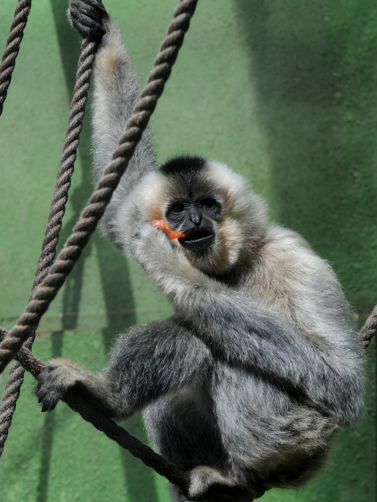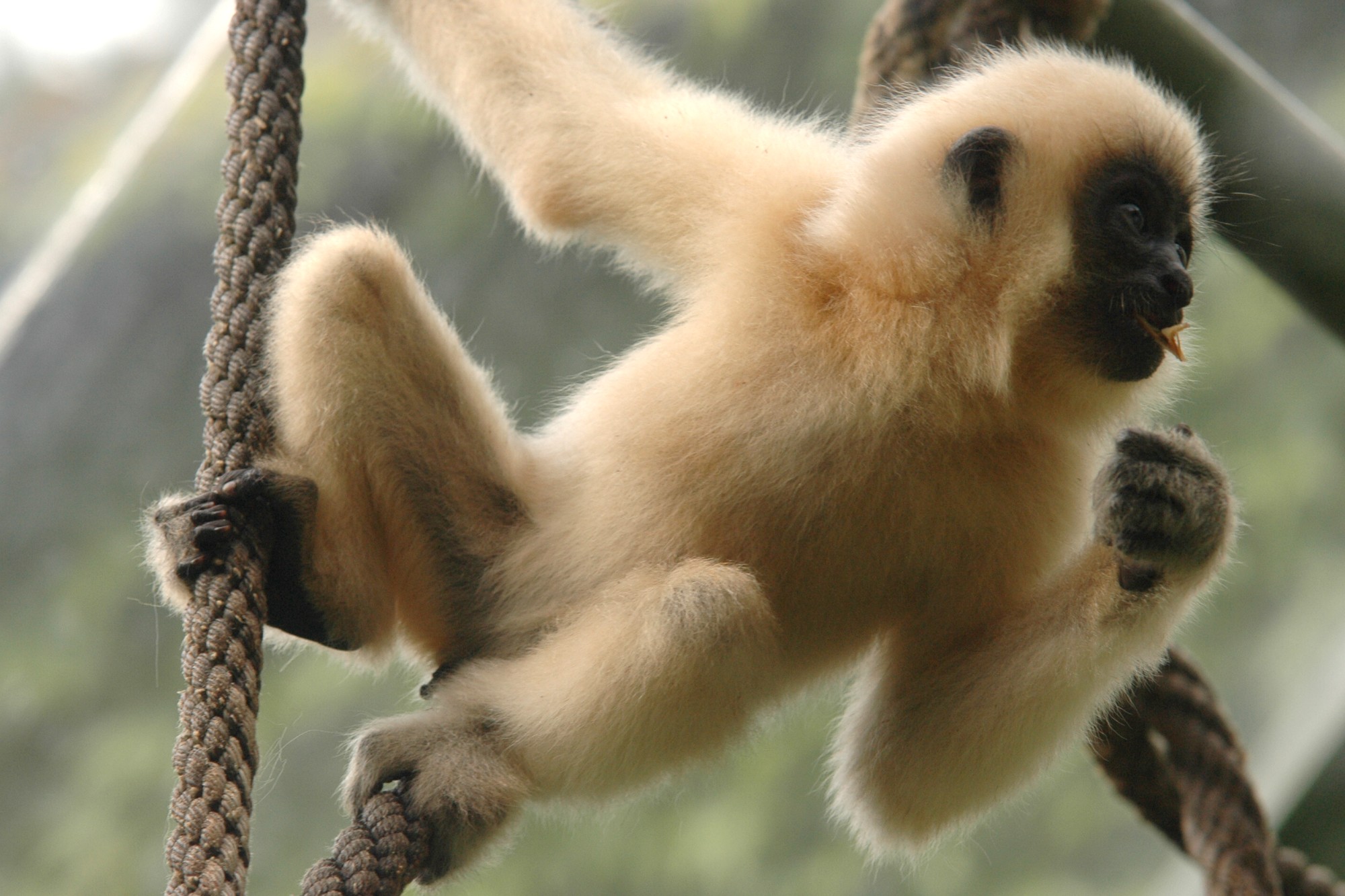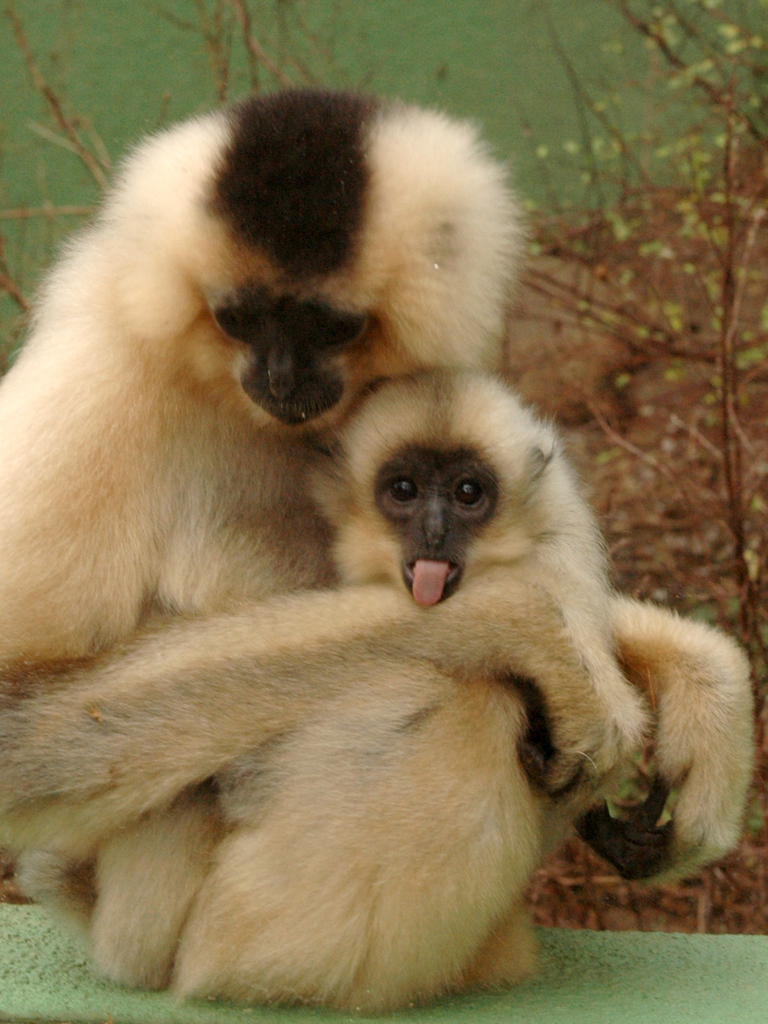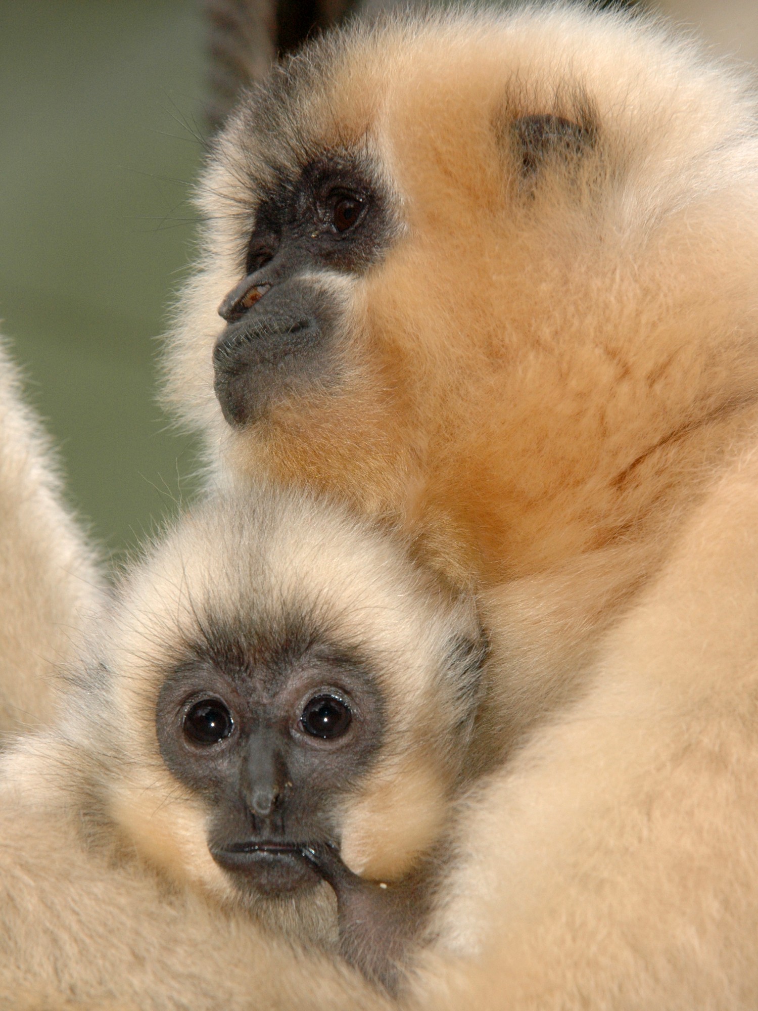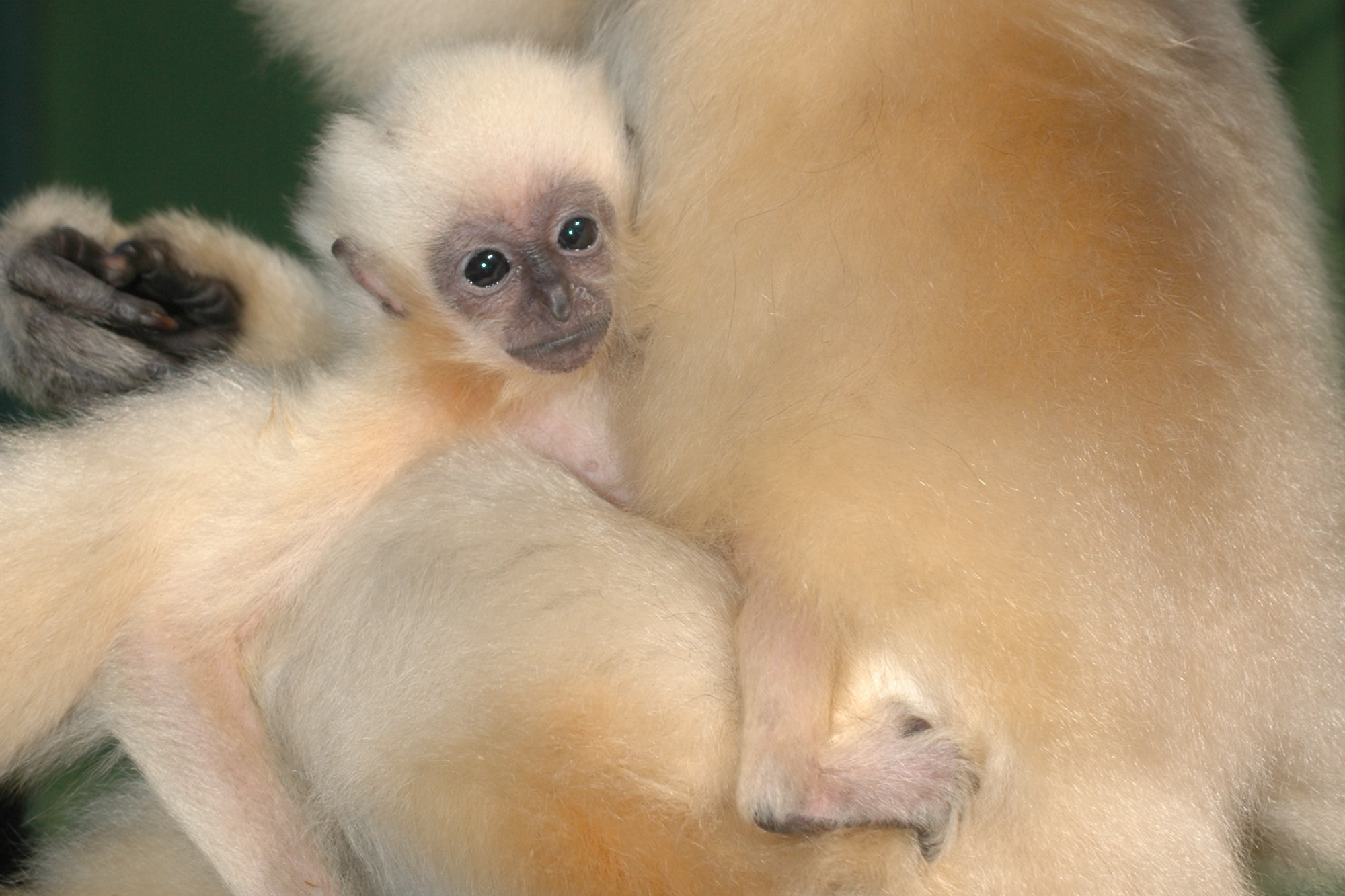 U tohoto druhu gibonů se mláďata rodí světlá, v jednom a půl roce postupně tmavnou, až zcela zčernají. V období dospívání se samice přebarví zpět do světlé barvy, samci již zůstanou černí. Giboni se pochybují ve větvích stromů tzv. brachiací, což je pohyb v závěsu za ruce.