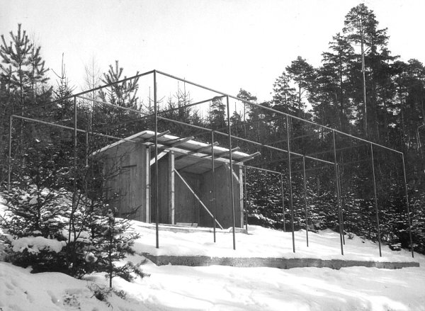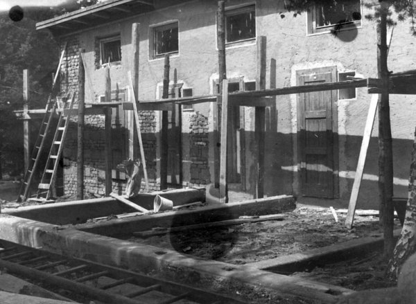 Po dokončení hráze vodní nádrže v roce 1954 bylo vystavěno jedenáct velkých voliér pro ptáky na vrstevnicové cestě (tři z nich stojí dodnes - voliéra pro puštíky a kalousy, sovy pálené a sovice sněžné). Dále pokračovaly lesnické práce a započalo se s opravami hospodářských budov. Z bývalé hospodářské stodoly a chlévů po přestavbě vznikly kanceláře, skladiště, byty. Vystavěly se také provizorní dřevěné přístřešky, které sloužily jako seník, stolárna, dílny a garáže. Problematické bylo i zavedení elektrického proudu, který byl instalován jen v kuchyni.