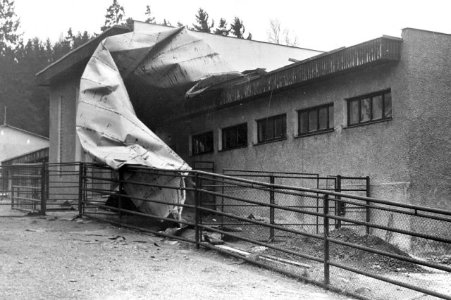 V zoo prošla 26. 3.1991 velká vichřice, která napáchala v areálu obrovské škody. Strhla střechu na zimovišti afrických zvířat, po celé zoo byly velké polomy smrkových porostů. Stovky polámaných stromů bylo nutné urychleně odstranit a zároveň opravovat i poškozené ploty a hrazení u výběhů. Ještě několik roků po větrné smršti bylo prováděno zalesňování odtěžených holin.