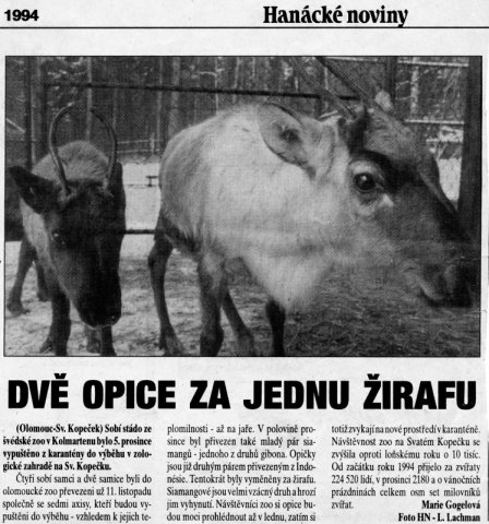 Počátkem devadesátých let byl nahlášen výskyt mladého medvěda hnědého na prostějovsku. Na polích u Výšovic se jej podařilo za pomoci policie lokalizovat a imobilizovat narkotizační puškou. Bohužel se v žebru zalomila jehla z uspávací střely tak nešťastně, že za několik dnů po protržení bránice a uskřinutí střeva uhynul v karanténě naší zoo. Medvěda nebylo možné včas operovat z důvodu veterinárních nařízení ohledně nákazy vzteklinou.