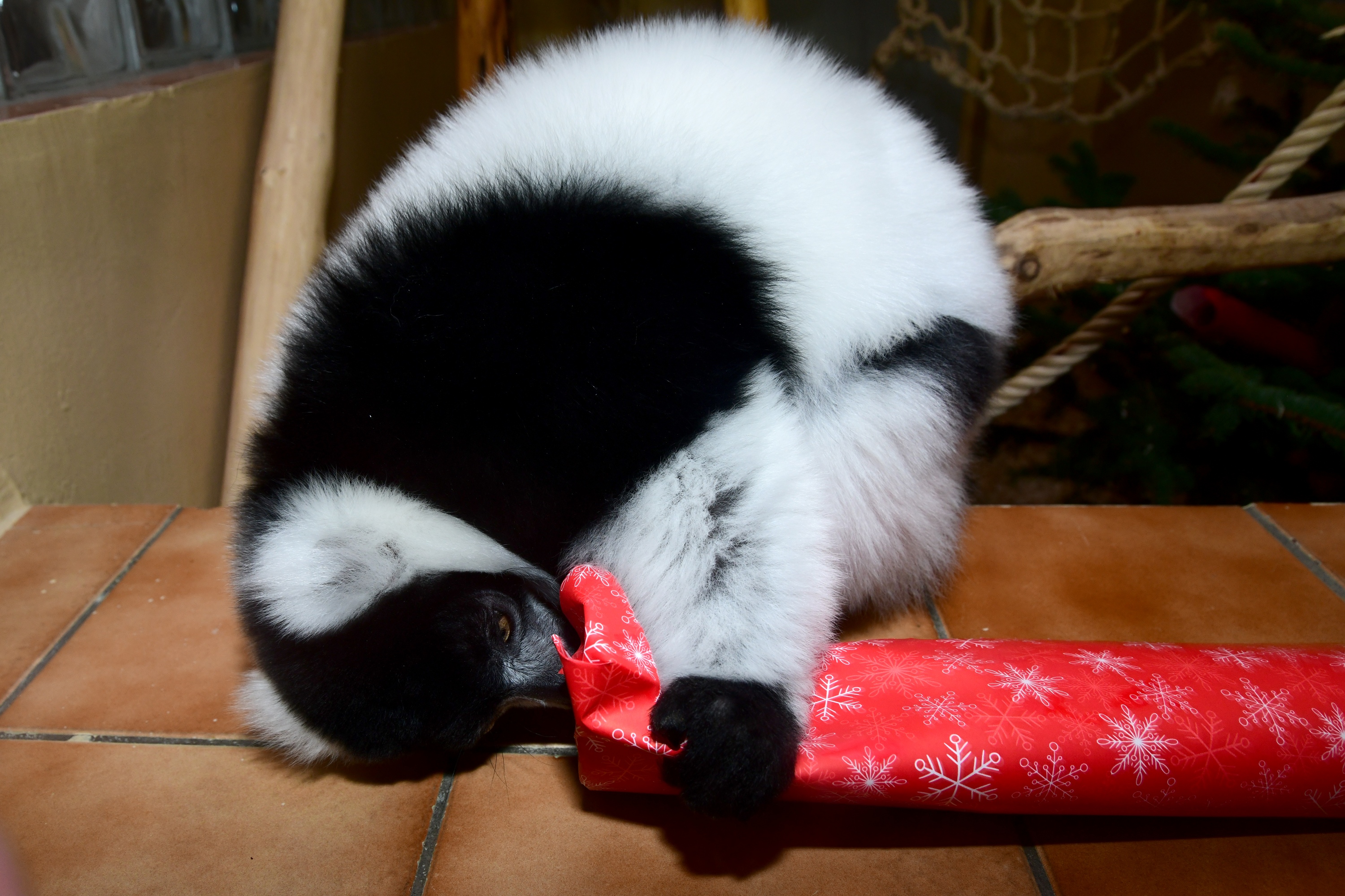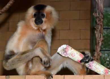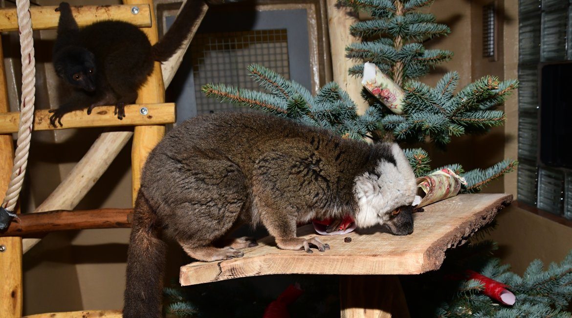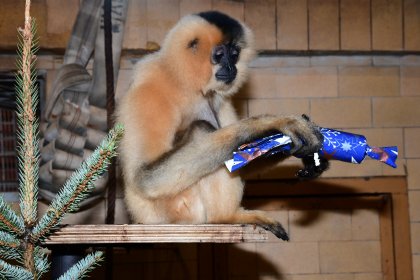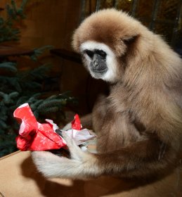 Je mylnou představou, že by zvířata na Štědrý den hodovala podobně, jako se hoduje v lidských příbytcích. Proto ani v lednu nezjistí, že je jim jejich zvířecí kabát malý. Nad krmnou dávkou totiž bedlivě bdí krmivářka zoo, a to do té míry, že každému zvířeti stanovuje pravidelnou a přesnou krmnou dávku na kg jeho váhy a na den. Jakákoliv odchylka by v tomto ohledu mohla napáchat víc škody než užitku. Zvířata by mohla trpět zažívacími potížemi, a proto se po celý rok zahrada obrací i na širokou veřejnost, aby zvířata v ní chovaná nekrmila. Řídíme se heslem, že naši svěřenci, co se týká krmení, mají Štědrý den denně. Co však zvířatům k Vánocům nadělíme rádi, jsou nejrůznější dárky, v nichž mají ukryté rozmanité dobroty. „Pro naše zvířata je přijímání potravy v rámci tzv. enrichmentu zábava. Tentokrát jsme se u opic rozhodli pro vánoční dárky, do kterých bylo ukryto nejrůznější krmení. A tak se sice hodovalo jako vždy, akorát ne tradičně z misek a krmných míst. Zvířata si hostinu náležitě užila,“ uvádí zooložka Ing. Jitka Vokurková.