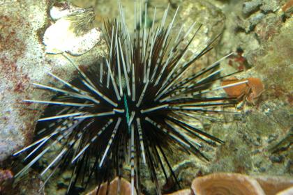Průměr těla má okolo 5 cm, s ostny může mít až 25 cm. Občas se dováží a chová v mořských akváriích. Má dva typy ostnů, delší jsou tupé a duté, kratší špičaté obsahují toxiny působící silnou bolest. Zalomené ostny mohou způsobovat hnisavá poranění.