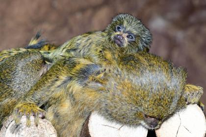Žijí v párech nebo malých rodinných skupinkách v korunách stromů, kde většinou rodí jediná vůdčí samice, u podřízených samic, jejích dcer, nedochází ani k ovulaci. Péči o mláďata zajišťuje samec nebo další členové rodiny-nosí je na svých bedrech, samice je pouze kojí. Kosmaní novorozenec je však pořádný cvalík. Než se mládě ve věku deseti týdnů postaví na vlastní nohy, váží zhruba polovinu toho, co otec.