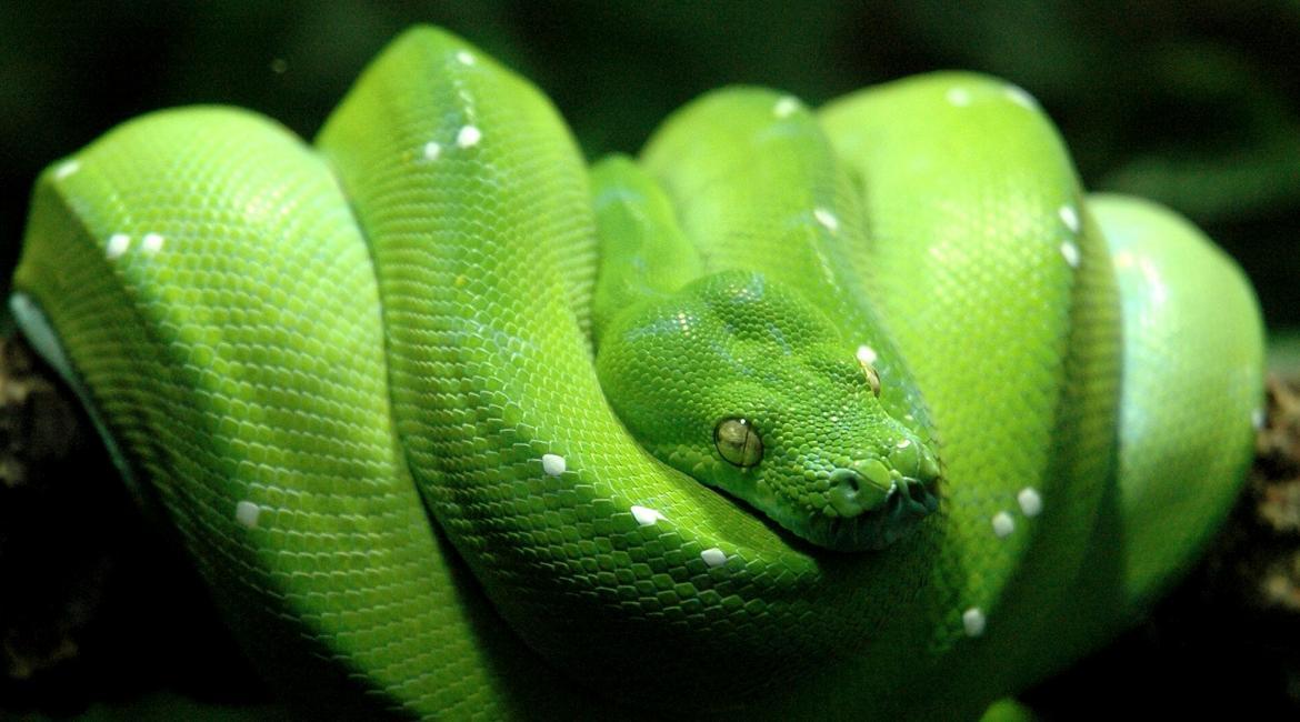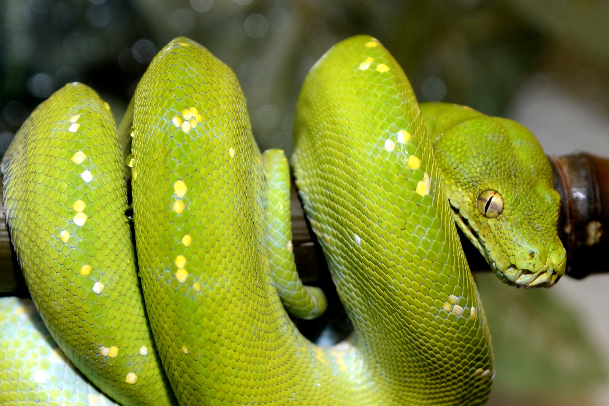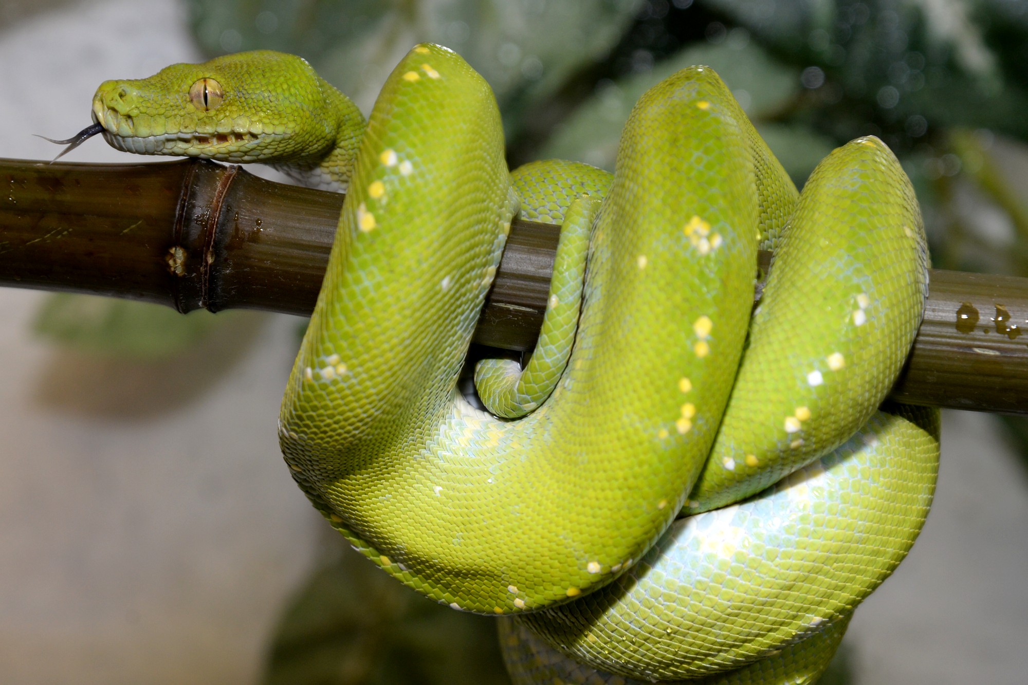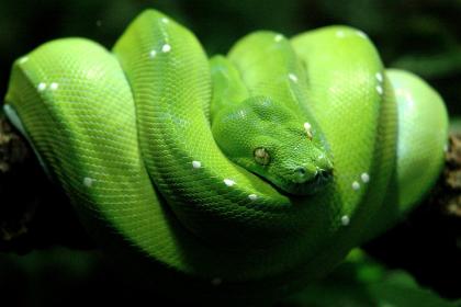 Mláďata bývají vybarvená zcela odlišně než dospělí jedinci, jejich zbarvení může být i žluté nebo žlutočervené. Typickou zelenou barvu pak získávají až po prvním roce života, v některých oblastech se vzácně vyskytují i modře zbarvení jedinci. Živí se především menšími ptáky, savci a obojživelníky.