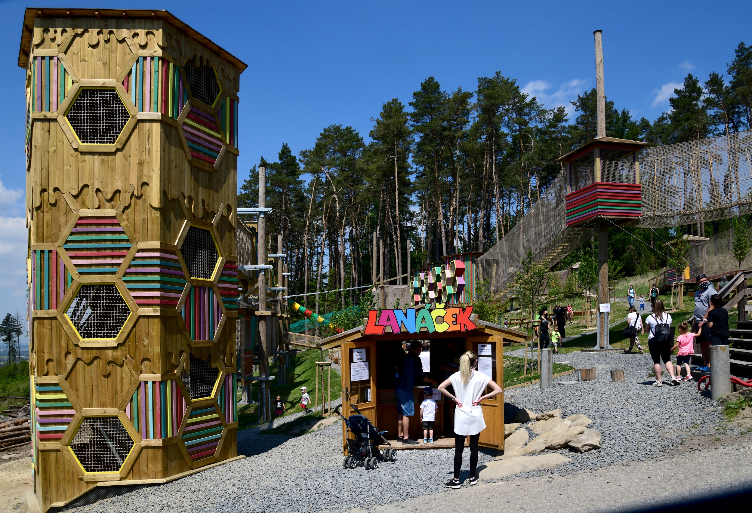 Vypořádat se takto s katastrofou, natož přírodní, to si zaslouží velký obdiv. Nejprve Lanáček oslabil kůrovec, poté 10. 3. přišel nezvaný host v podobě vichřice Eberhard. Po jak dlouhé době se Lanáček znovuotevírá veřejnosti? Děkujeme za obdiv, to se nám moc často nestává :-). Ano byly to dvě náročné situace, ale nakonec z toho vzniklo něco nového a věříme i zajímavého pro návštěvníky ZOO. Je to přibližně rok a půl, kdy jsme naposledy provozovali Lanáček a potom již to mělo rychlý spád. V čí hlavě se zrodil nápad vybudovat lanové centrum přímo v areálu zoo? Kdy to přesně bylo? Od roku 2000 provozujeme lanové centrum PROUD v Olomouci, ale s kolegou Michalem Paulíčkem jsme měli zkušenost ze světa, že existují lanové dráhy vytvořené pouze pro děti. Současně jsme se chtěli vyhnout speciálnímu zaškolování, proto jsme tehdy zvolili jistící sítě, kde návštěvníci nepotřebují další vybavení. Naše představa byla, že vytvoříme místo, které děti láká, a budou se tam cítit spokojeni. Proto jsme zvolili lanové překážky, které děti milují a k tomu kombinace barevných lan a sítí. Tak jsem v roce 2008 realizovala výstavbu prvního Lanáčku. V čem všem se nový Lanáček liší od toho původního? Kromě toho, že je nový Lanáček vystavěn na sloupech a jsou tam použity modernější technologie, tak jsme se snažili najít i vodící linku. Nakonec vyhrála inspirace životem včel. Tuto myšlenku chceme dále rozvíjet.
