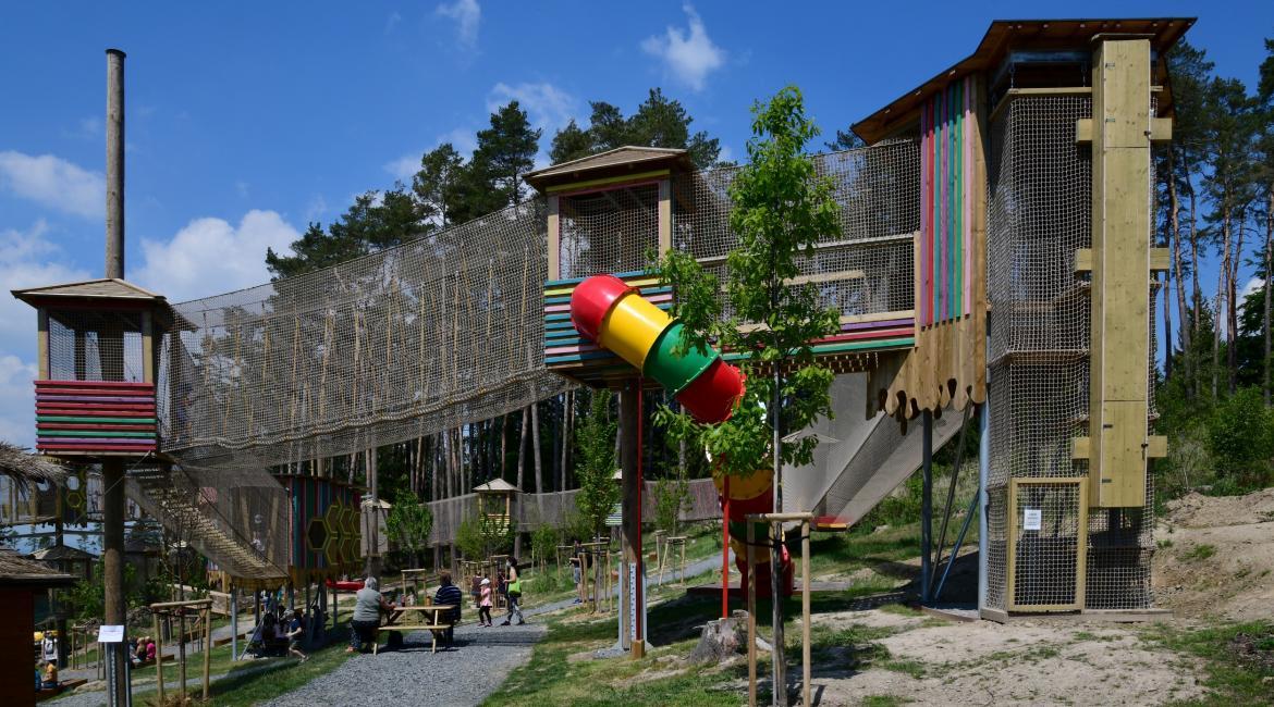 Na co se děti mohou těšit? Na nové překážky, druhé patro ve výšce cca 8 nad zemí a dalším tobogánem.