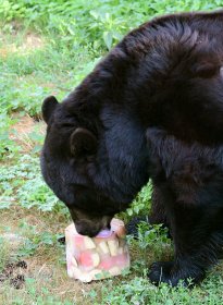 I zvířata v naší zoo mají ráda v létě osvěžení. Proto jsme dnes pro medvědy připravili "zmrzlinu" z ovoce, zeleniny a jiných dobrot zamražených v ledu. Kopeček zmrliny velikosti menšího kbelíku jsme jim navíc vylepšili medem, který mají velmi rádi. Jak si s tím poradili se můžete podívat na fotografiích.