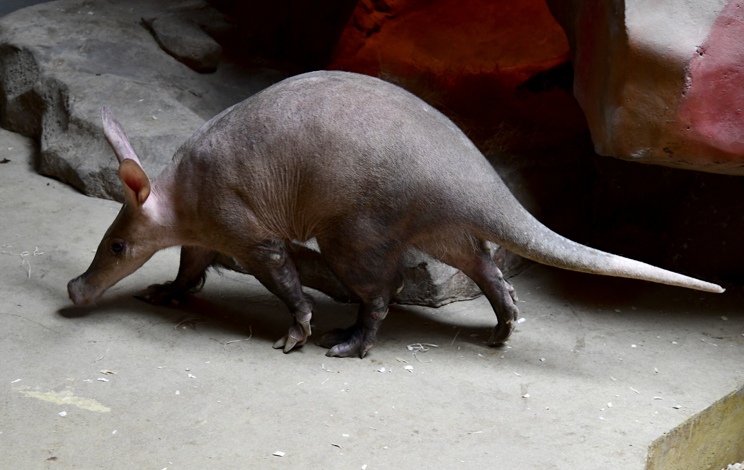 Zavalitý, téměř lysý savec, jehož tělo pokrývají řídké štětinky a končetiny jsou zakončeny dlouhými drápy, s ocasem