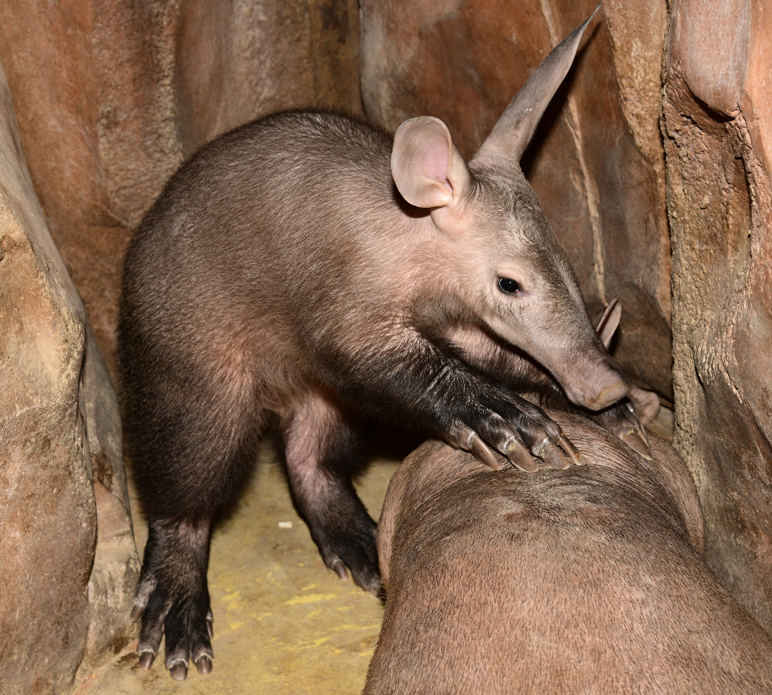 Malý hrabáč, narozený 26. března už váží 24 kg. Ve věku 4 měsíců je sice stále závislý na matce, ale pokud se týká