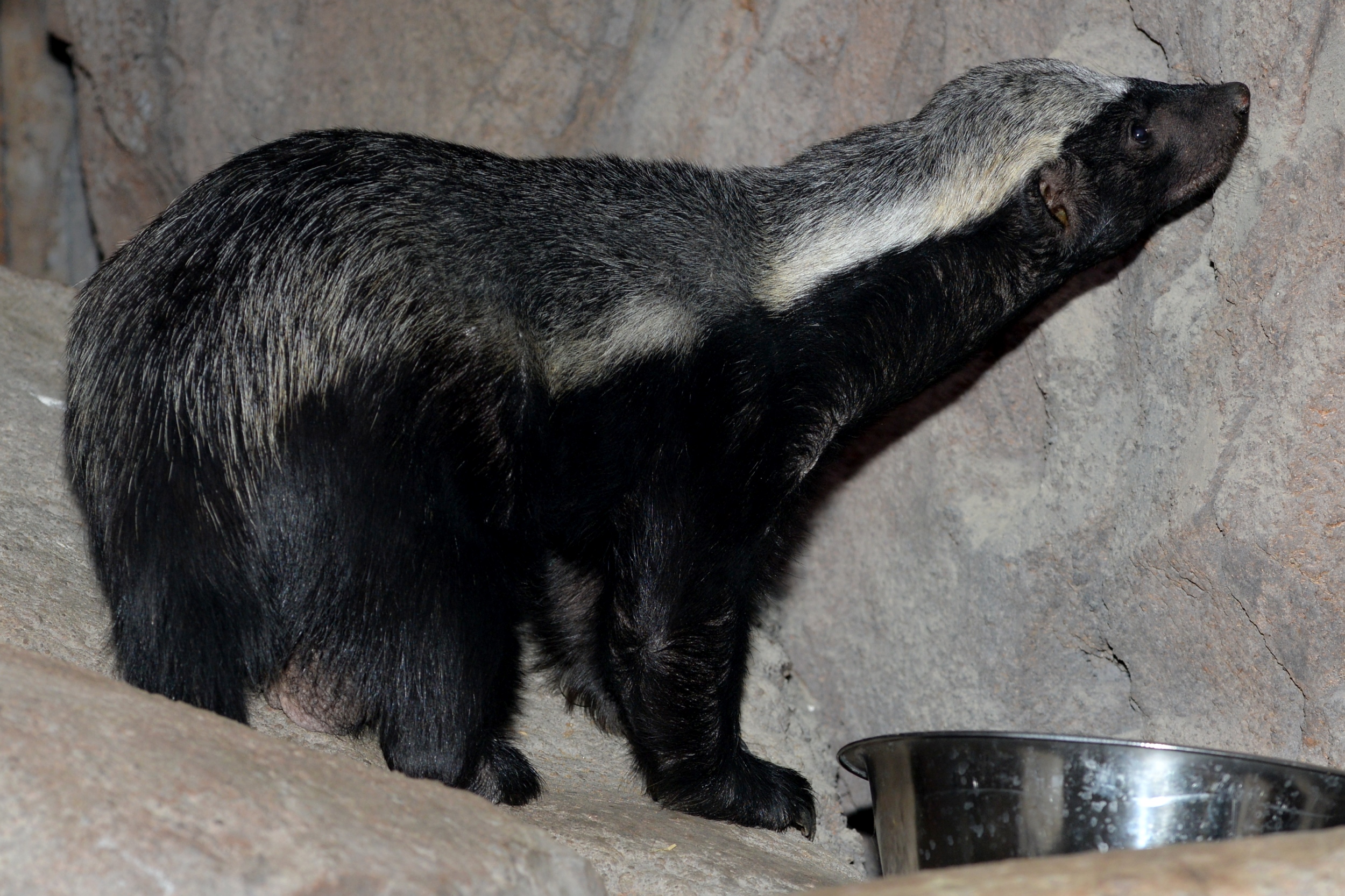 Je tomu zhruba měsíc od jejich přestěhování do pavilonu Kalahari v olomoucké zahradě. „Se svým novým bydlením se však tyto inteligentní šelmy už začaly patřičně seznamovat,“ popisuje šéf zimoviště afrických zvířat Pavel Vidlář. V čase, kdy pavilon postrádá přítomnost návštěvníků či zaměstnanců, mají cca 16 hodin na to, aby nastudovali cokoliv, třeba i údržbářskou příručku ČKD pro elektrikáře. Koneckonců umí zacházet i s drobným nářadím. Prozatím je tento pár plachý, ale patřičně nás prověřuje, a pokusem o demontáž elektrozařízení si patrně chtěl zajistit větší soukromí. Řeč není o nikom jiném než o medojedech kapských.