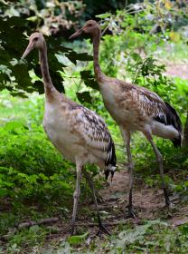 Jeřáb mandžuský. Tento vzácný opeřenec se v olomoucké zoo opět rozmnožil. Namísto odletu však na mláďata čeká naše široká veřejnost. „V letošním roce se nepodařilo realizovat přesun oplozených vajec do rezervace z důvodu omezení mezistátního cestování v souvislosti s pandemií koronaviru, a proto vejce zůstala pod rodiči. Mláďata se vyklubala 30. dubna. Vyklubání dvou mláďat je u tohoto druhu běžné, ale většinou se podaří odchovat jen jedno mládě. Nám se letos díky péči rodičovského páru i velkého úsilí ošetřovatelského týmu podařilo odchovat obě mláďata. Situace u našeho páru je komplikovaná tím, že samice po úrazu zobáku nemůže dobře uchopit drobné kousky potravy a podávat je mláďatům. Bylo zapotřebí neustále jeřábům dodávat velké množství krmiva – myší, hmyzu, jednodenních kuřat, rybiček a míchanice. Mláďata jsou sameček a samička“, vysvětluje zoolog RNDr. Libuše Veselá.