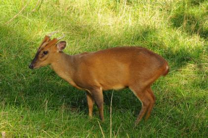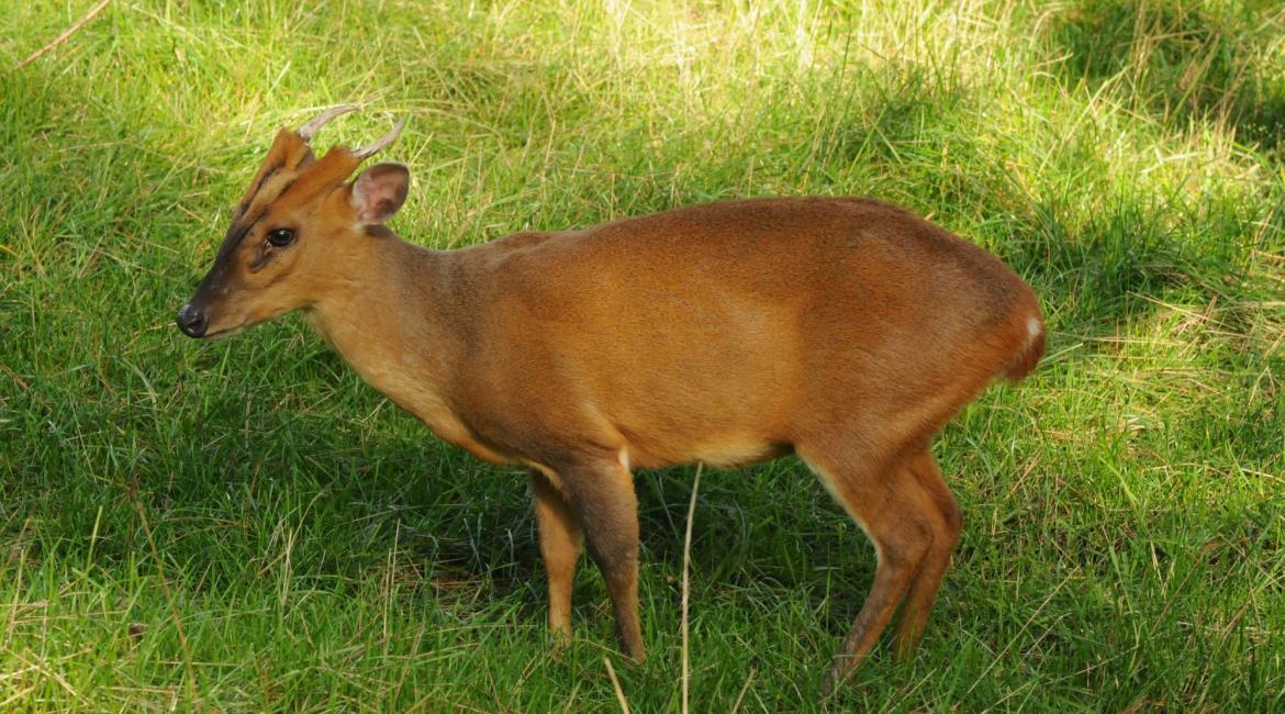 Během páření samci spolu bojují a vydávají štěkavé zvuky. Vysazen byl i v Evropě, ve Velké Británii se stal invazivním druhem.