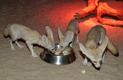 Olomoucká zahrada chová fenky od roku 2006. K dnešnímu dni se zde narodilo celkem 28 mláďat. Jedná se o zvířata s noční aktivitou, současně nám záleží na tom, aby je příchozí návštěvníci viděli aktivní. Ve dne je tedy v pavilonu simulována noc. Návštěvníci vchází do tmy, v níž svítí pouze malá barevná světla, která zvířata příliš nevnímají, lidé je však mohou pozorovat při různých činnostech. Mláďata jsou stále v boudě s matkou, přijímají od ní mléko, otec nosí potravu před boudu.
