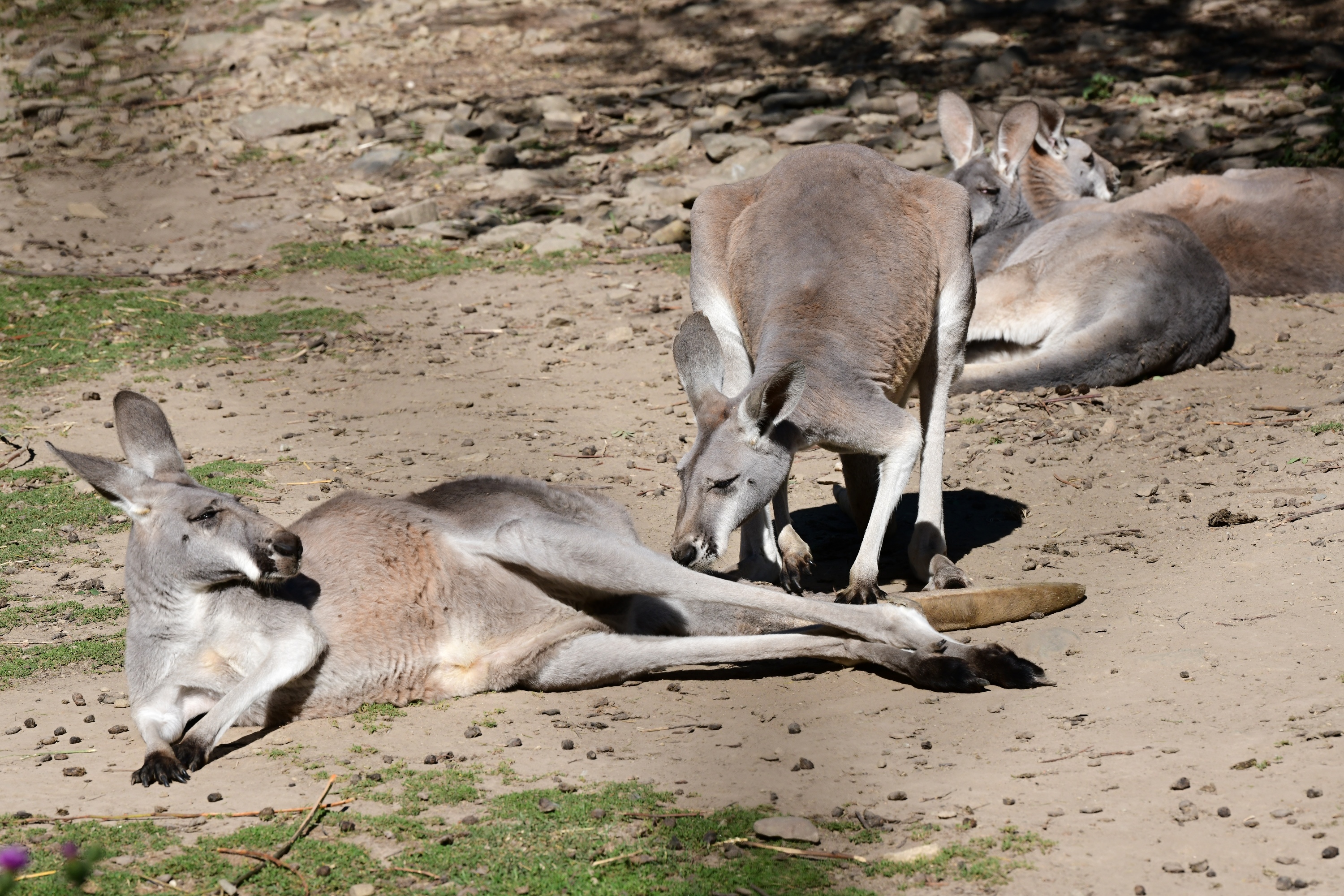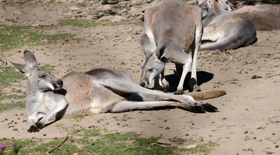 Stádo klokanů rudých doznalo v uplynulém roce řadu změn. Několik mladých samců odcestovalo do různých destinací v Evropě a do Olomouce naopak přijel nepříbuzný samec ze Zoo Overloon v Holandsku. U některých samic se po kratší přestávce opět objevila mláďata, z nichž jedna samička už vak opustila a další dvě se k tomu chystají v nejbližších dnech. „Klokani rudí jsou obyvatelé suchých oblastí australského vnitrozemí a naše vlhké chladné zimy sice dobře snášejí, ale toto počasí se jim příliš nelíbí. Většinu času tráví tak, že se vyhřívají na teplé podlaze své vnitřní ubikace, nebo konzumují chutnou zeleninu, kterou jim ošetřovatelé připravují“, uvádí zoolog Ing. Eliška Veselá. Skupina klokanů rudých v olomoucké zoo je při svém počtu 19 jedinců tou nejpočetnější v republice. Chov ve větší skupině je pro klokany rudé přirozený, v přírodě se sdružují do velmi početných stád a v podmínkách chovu v zoo je na první pohled zřejmé, že se ve větší skupině cítí dobře a že jim je vzájemný přímý kontakt velmi příjemný. Jejich výběh je navíc velmi atraktivní tím, že je průchozí pro návštěvníky.
