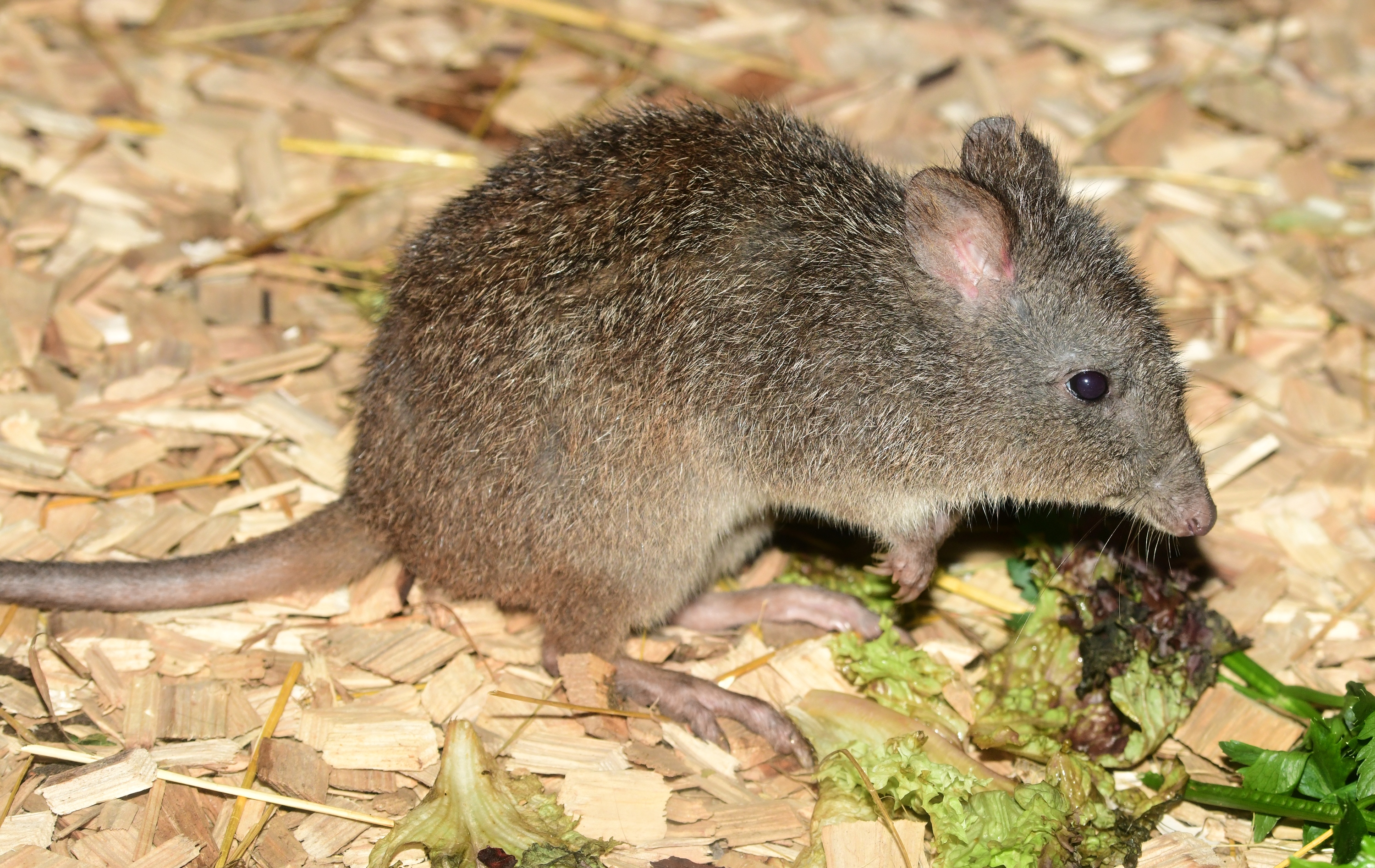 V přírodě pije vodu jen minimálně, vystačí si s vodou obsaženou v jeho nejoblíbenější potravě-v houbáchz příbuzenstva lanýžům, jež se vyznačují převážně podzemními plodnicemi, které „vypátrá“ za pomocí čichu a tvoří v určitém ročním období až 80 % jeho potravy. Při jejich hledání překonává značné vzdálenosti. Byť se vzhledem ke konzumaci hub jedná o potravního specialistu, živí se i další rozmanitou rostlinnou potravou, ale i hmyzem, červy, které vyhrabává předníma nohama.