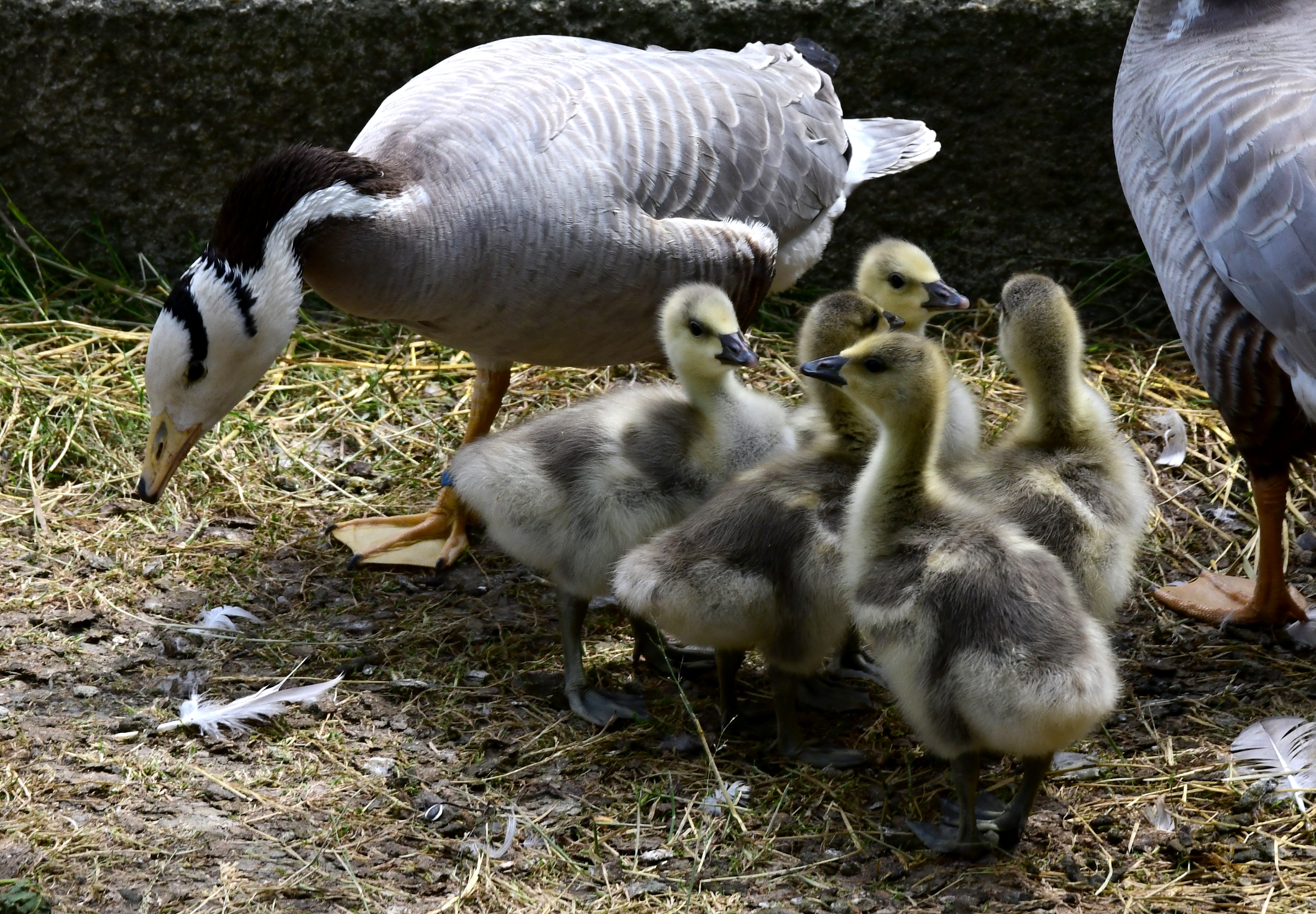 Husy tibetské (Anser indicus) tentokrát pečují o pět mláďat. Tyto krásné husy ze Střední Asie u nás můžete vidět v obří voliéře u Pavilonu šelem. Tam jim ale nově dělají společnost jeřábi mandžuští a bělošíjí, kteří nepohrdnou ani husím vejcem nebo dokonce housetem. Z toho důvodu byl chovný pár před snesením snůšky přemístěn do zázemí, kde má k vyvedení housat potřebný klid.