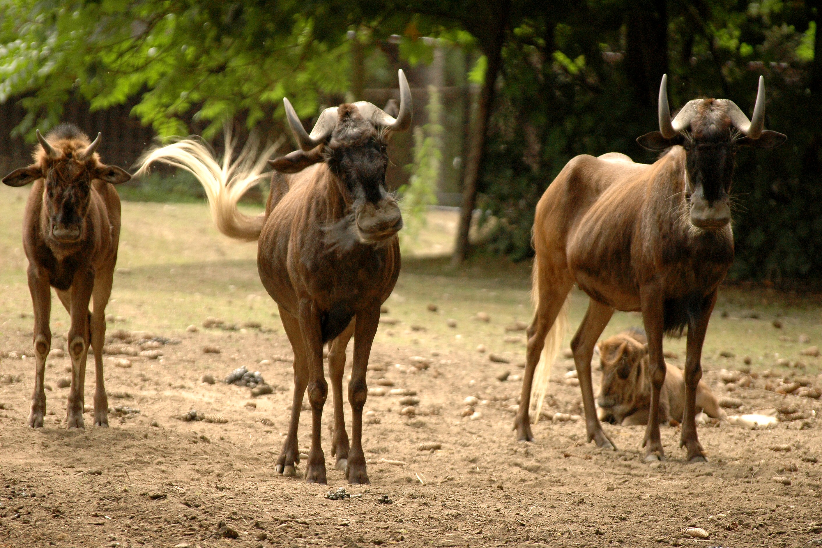 Žije ve stádech, která nejsou tak obrovská jako u pakoně žíhaného. S oblibou je loví lvi, gepardi, hyeny a psi hyenovití.