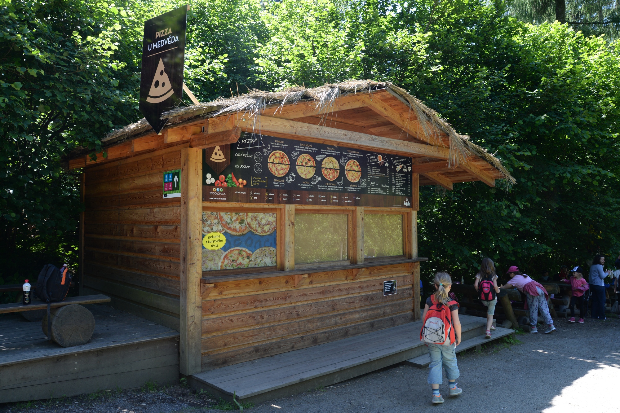 Pro ty, kteří dávají přednost slané svačince, nabízíme stánek s pizzou. Najdete ho v trojúhelníku pavilonu netopýrů a výběhů medvědů, vlků a levharta mandžuského.