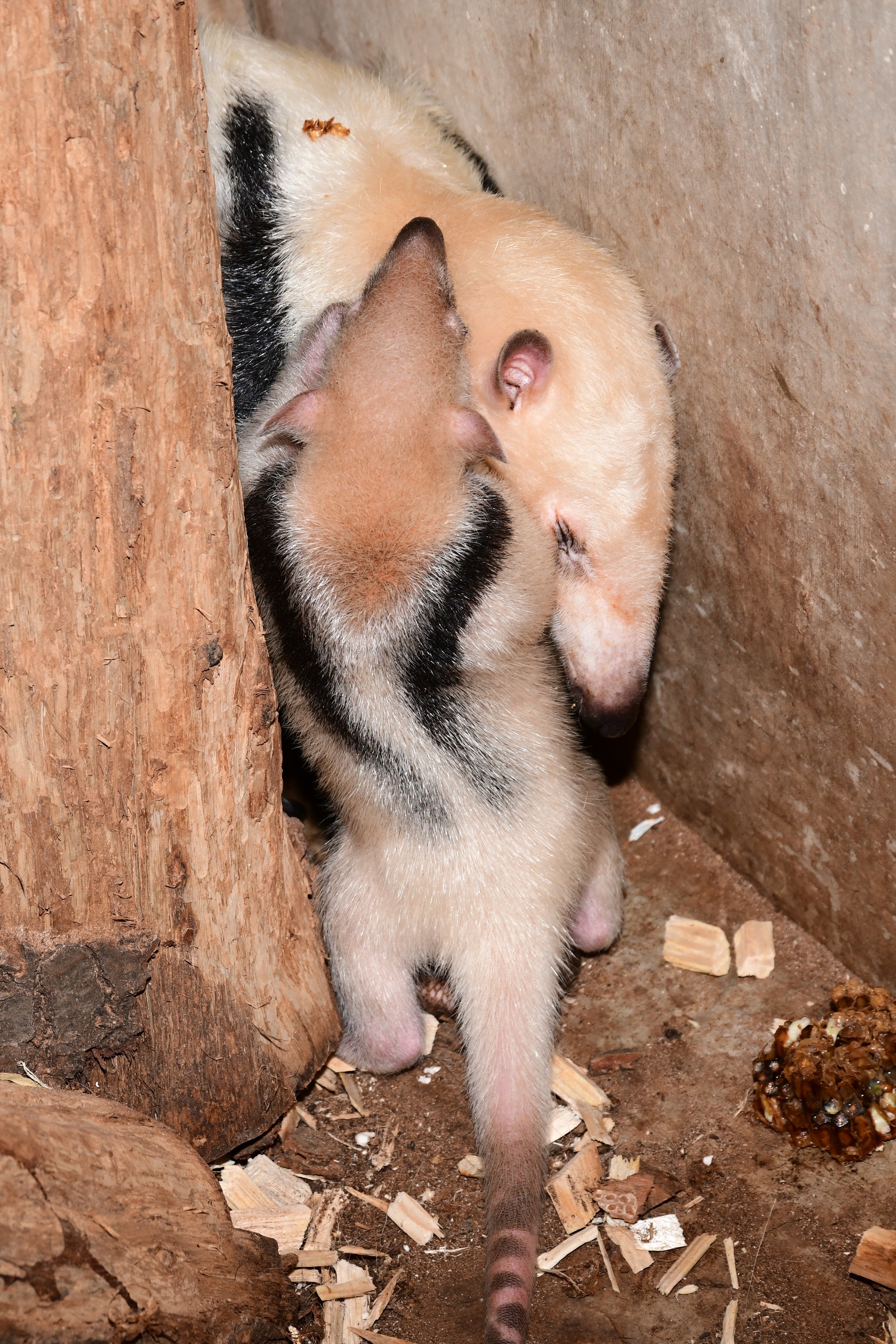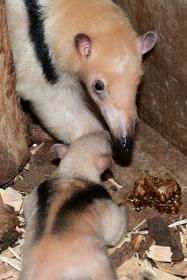 10. dubna přivedla samice Cala na svět mládě vážící téměř půl kilogramu. Od prvopočátku mládě pravidelně kontrolujeme vážením. A přírůstky jsou vysoké. Mládě je zmenšenou kopií své matky. „Ihned po narození vidí a intenzivně vyhledává zdroj mléka. Matka i s mládětem jsou přemístěni v zázemí zoo, aby mohl odchov bez obtíží probíhat. Dnes jsme k němu pustili, byť jen na chvíli, našeho fotografa, a tak se můžeme podělit o tuto zprávu s ostatními,“ uvádí zooložka Ing. Jitka Vokurková. Zoo Olomouc patří na území České a Slovenské republiky k jedněm z mála chovatelům, kterým se současně daří mravenečníka čtyřprstého i úspěšně rozmnožovat. S jeho chovem započala v roce 2003 díky Dartovi a jeho milé samici jménem Tama. Tehdy to byl jediný pár, který žil v českých a slovenských zahradách. K dnešnímu dni se v Zoo Olomouc narodilo 18 mláďat.