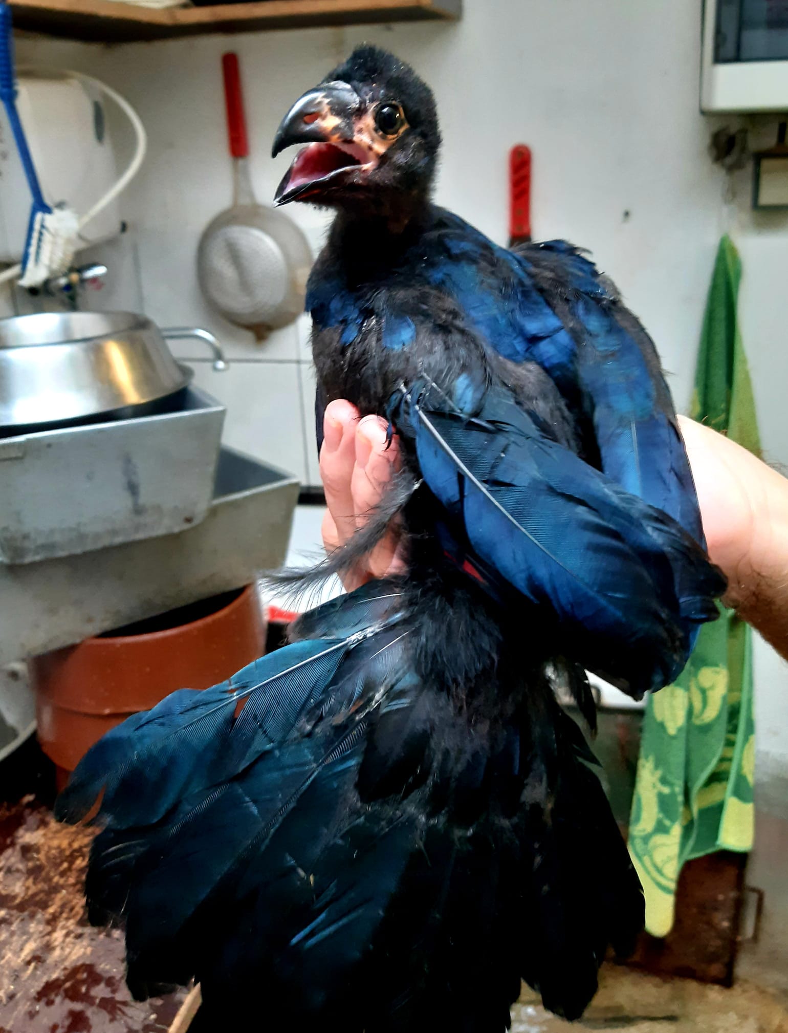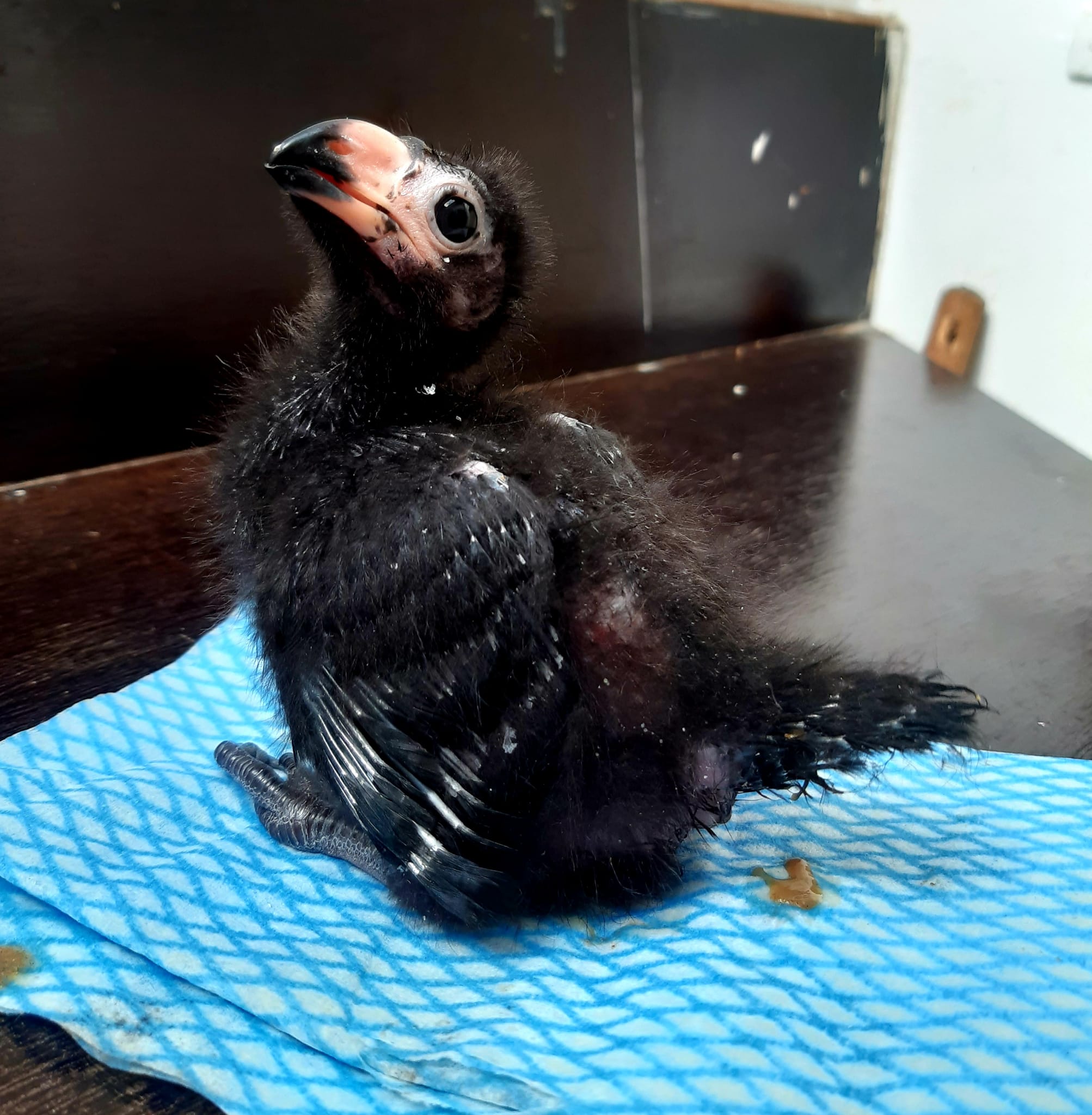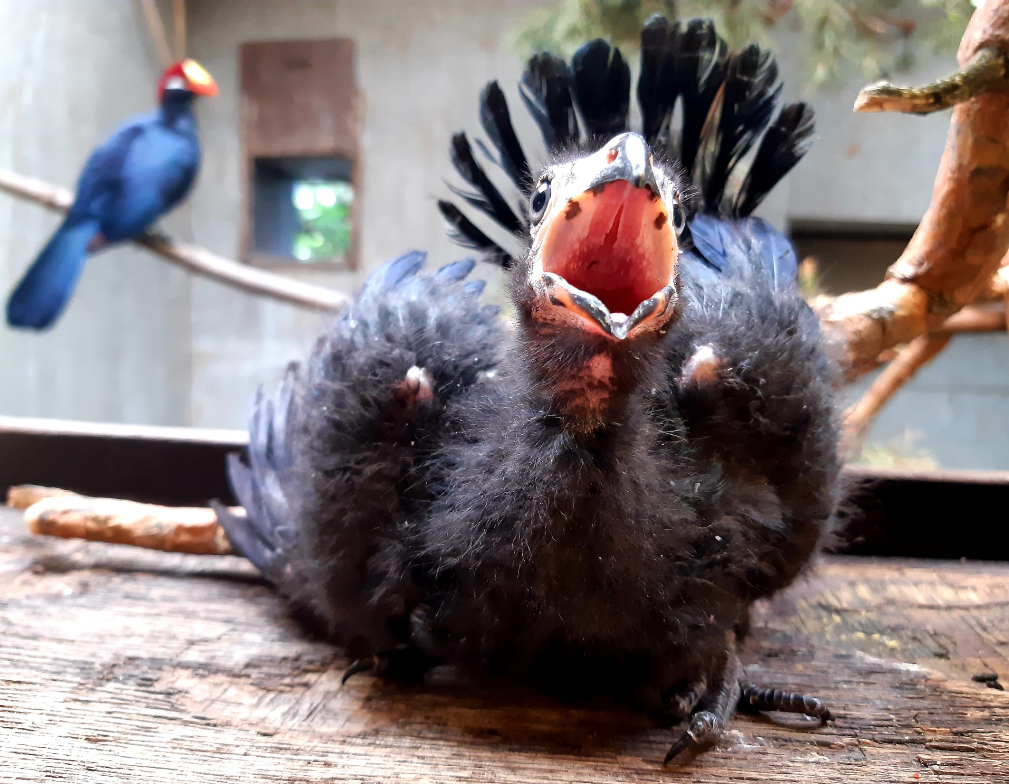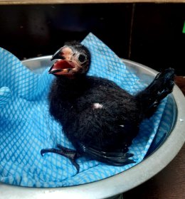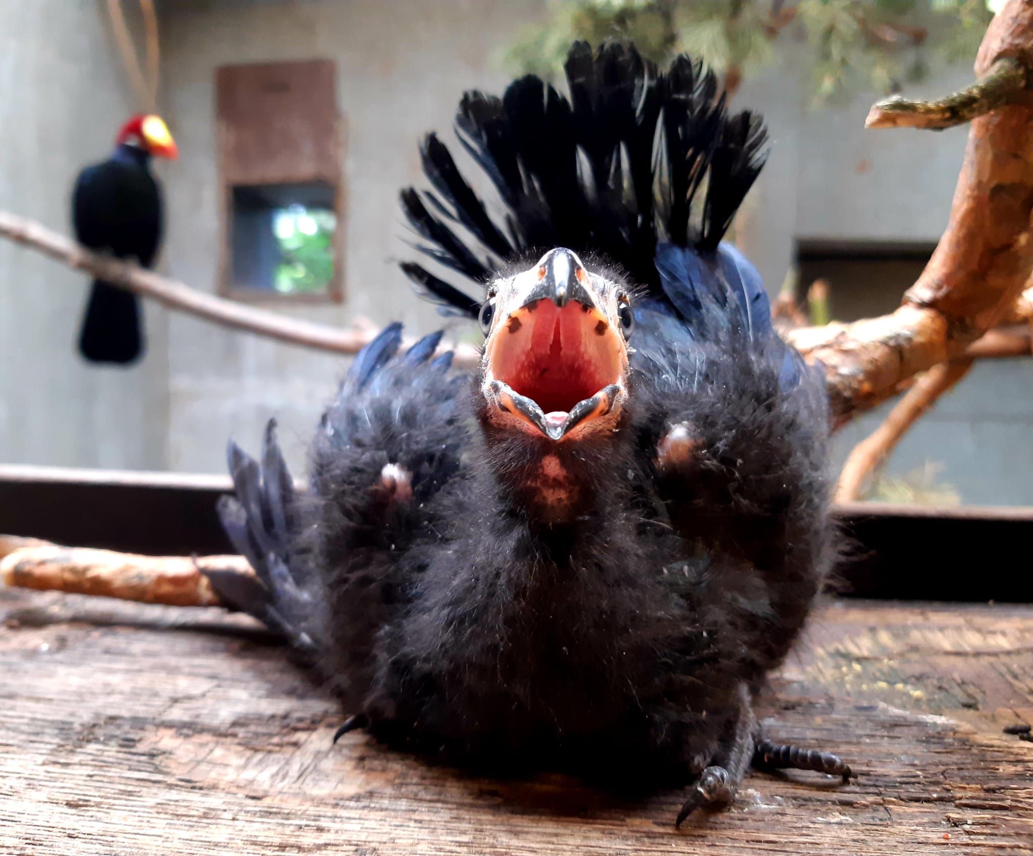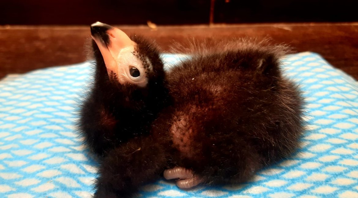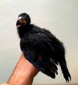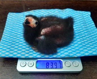 V druhé polovině června chovatelé zaznamenali v hnízdním košíku jedno vejce. Po mnoha neoplozených snůškách se konečně zadařilo a 25. 6. se vylíhlo malé, černé, „huňaté“ mládě. Rodiče ho urputně bránili tak, jak to mívají turaka ve zvyku. Proto se každá kontrola rovnala malému dobrodružství. Mláďata turak přirozeně překotně rostou a nejinak tomu bylo i u našeho prvoodchovu. Mládě za necelý měsíc téměř pětinásobilo svoji váhu, už 17. den věku opouštělo hnízdní košík a začalo se pohybovat po vnitřním prostoru, aniž by ještě bylo schopné letu. Analýzou DNA z rostoucího pera bylo prokázáno, že odchováváme malého samečka.