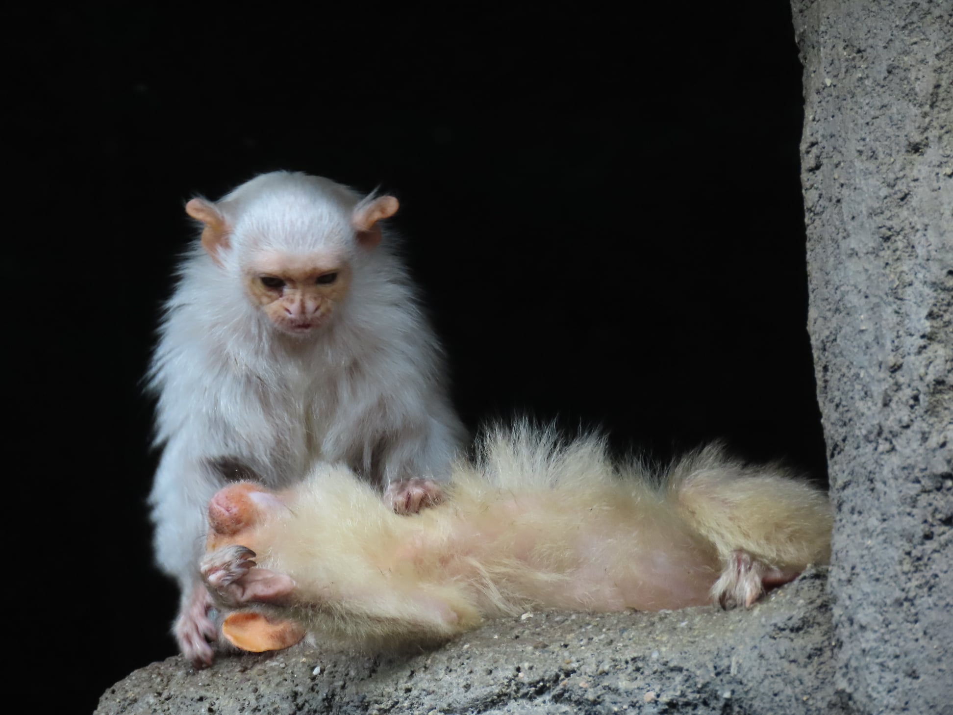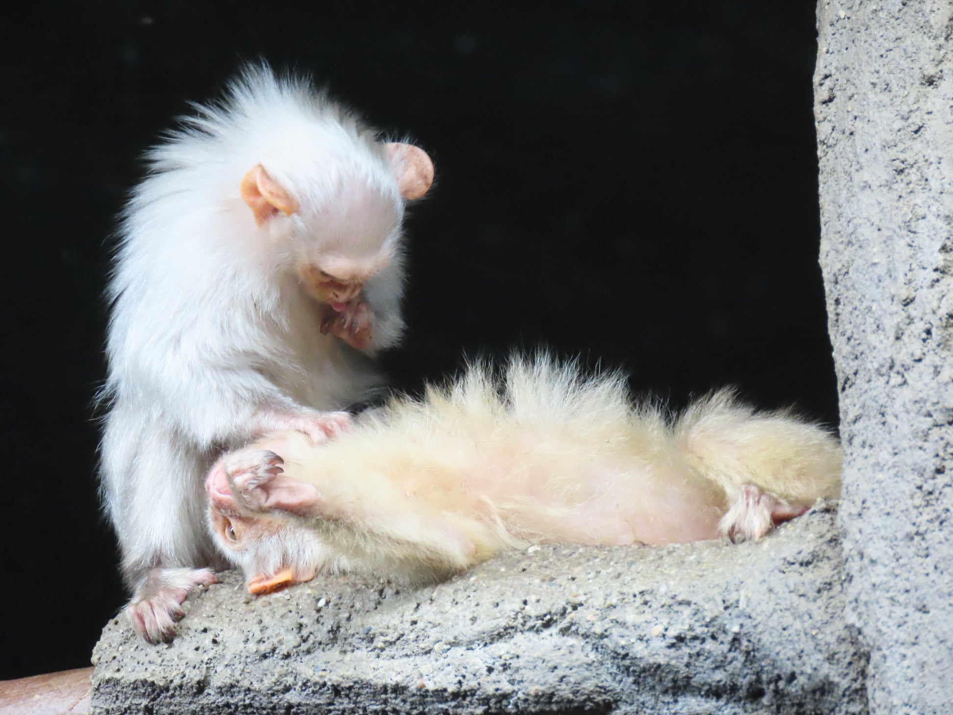 U samečka kosmana stříbřitého Quetsala, který nedávno přicestoval do olomoucké zoo ze Zoo La Lajita na ostrově Fuerteventura ve Španělsku, šel jakýkoliv ostych stranou. Naše samice se mu zalíbila na první pohled. „Věříme, že tento pár nebude dělat radost nejen sobě, ale i návštěvníkům a brzy se dočkáme jejich potomků,“ dodává zooložka Ing. Jitka Vokurková.
