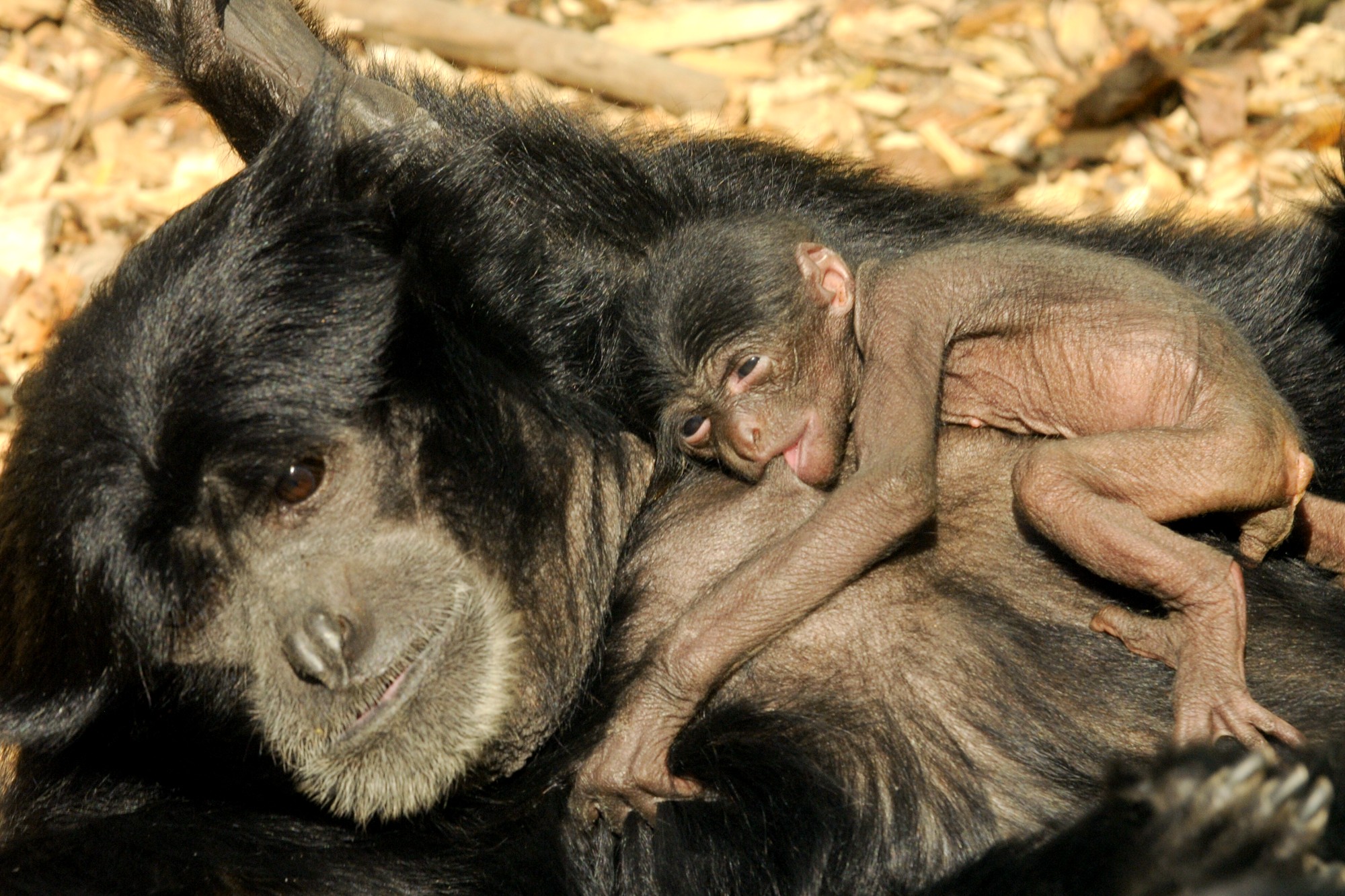 Samice rodí po 210 - 255 dnech jedno mládě. Mládě nosí zpočátku zavěšené na břiše. To roste velmi pomalu a plně dospívá až ve věku okolo sedmi let.