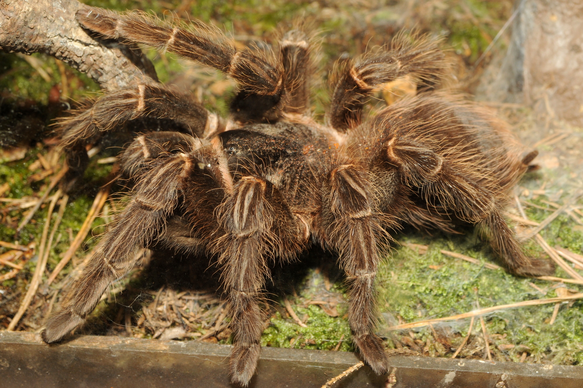 Dorůstá značné velikosti i s nohama může měřit až 20 cm, není útočný, ale při úleku je trochu zbrklý. Je schopen ulovit kromě hmyzu i hlodavce, ptáčka nebo ještěrku. Brání se vyčesáváním žahavých chloupků i kousáním.
