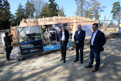 Dosavadní průběh stavby, která vyrůstá v centrální části zahrady mezi rybníčkem a nástupištěm safarivláčku, zkontrolovali zástupci hlavního investora, primátor Antonín Staněk a investiční náměstek Filip Žáček, společně s ředitelem Zoo Radomírem Habáněm. Prostor pro nový pavilon si stavební firma převzala na konci listopadu loňského roku a po nezbytných přípravách v lednu zahájila stavbu.