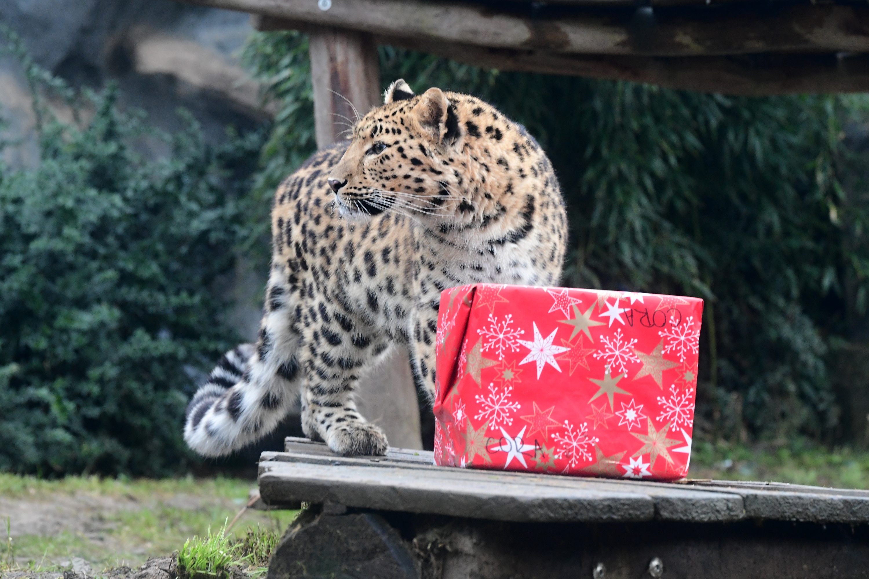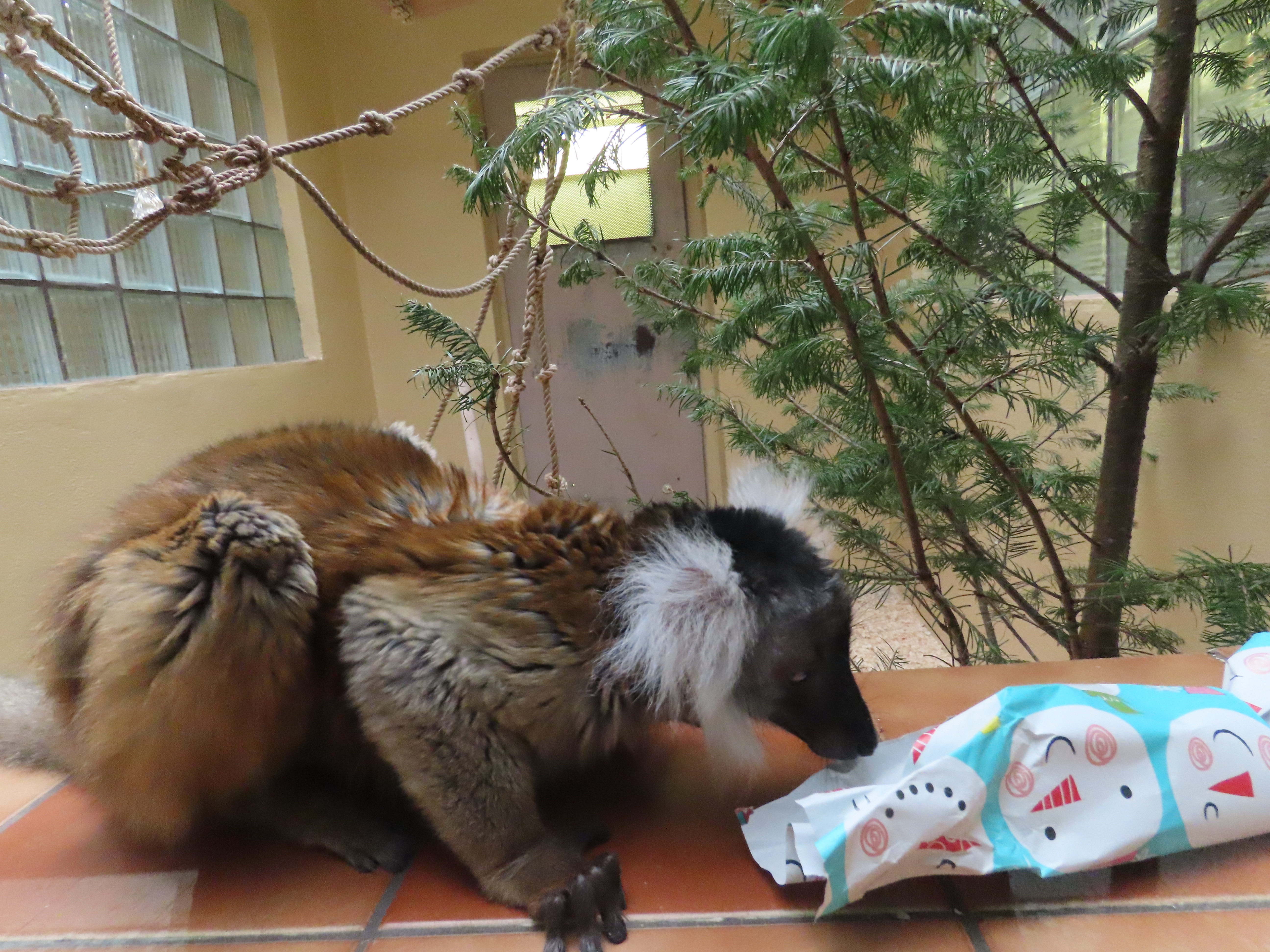 Nad krmivem a výživou zvířat olomoucké zoo bedlivě bdí její krmivářka. Ta stanovuje veškeré dávky tak, aby zvířata zde chovaná, zůstávala v co nejlepší možné kondici. Proto ani na Štědrý den či na Silvestra do nich nelze nikterak zásadně zasáhnout. To, co ale možné je, zvířatům v rámci tzv. enrichmentu zpestřit pobyt v zoo, a tím pádem i krmení. "Giboni, lemuři, levharti, ale i jiná zvířata si tak mohla rozbalit své speciální dárky, které ukrývaly něco na zub, co by standardně dostala, ale takto se krmila se zábavou. Bylo na nich na první pohled patrné, že si rozbalování potravy, které jim s láskou připravili ošetřovatelé, náležitě užívají," uvádí zooložka Ing. Jitka Vokurková.