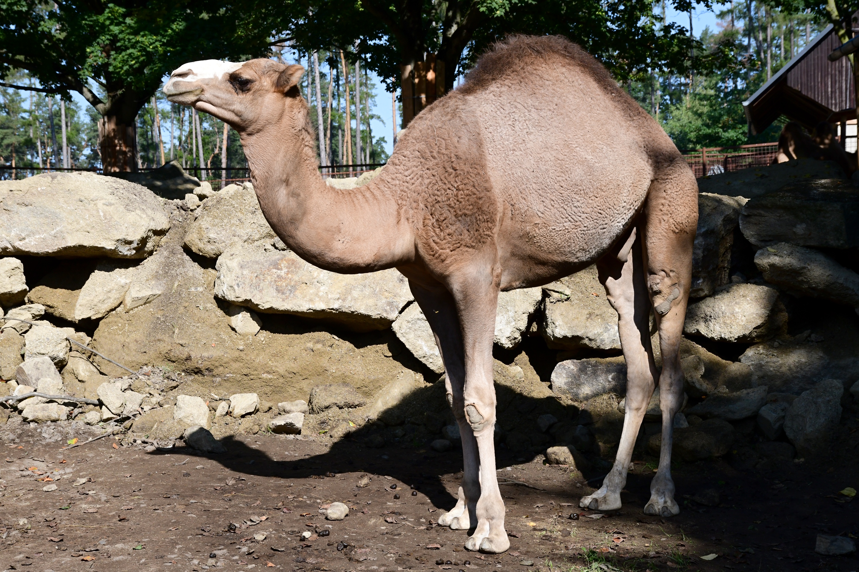 Velbloudi se pouštním podmínkám umí neskonale dobře přizpůsobit. Úzké štěrbiny nozder se při písečné bouři semknou a brání pronikání jemných pískových částeček. Uši chrání husté chomáče srsti a oči dlouhé dvojité řasy. V případě nutnosti zakryje velbloud oční bulvu průhledným víčkem a začne slzet, aby vyplavil případná zrnka písku. Pociťuje-li velbloud ohrožení, či se potřebuje bránit, používá 3 zbraně. Kouše, kope a plive. Sliny s bachorovou tekutinou dlouho střádá, ve chvíli, kdy je munice dostatek, vyhledá terč a plivne. Agresivní bývají převážně samci v říji, případně samice, když brání svá mláďata.