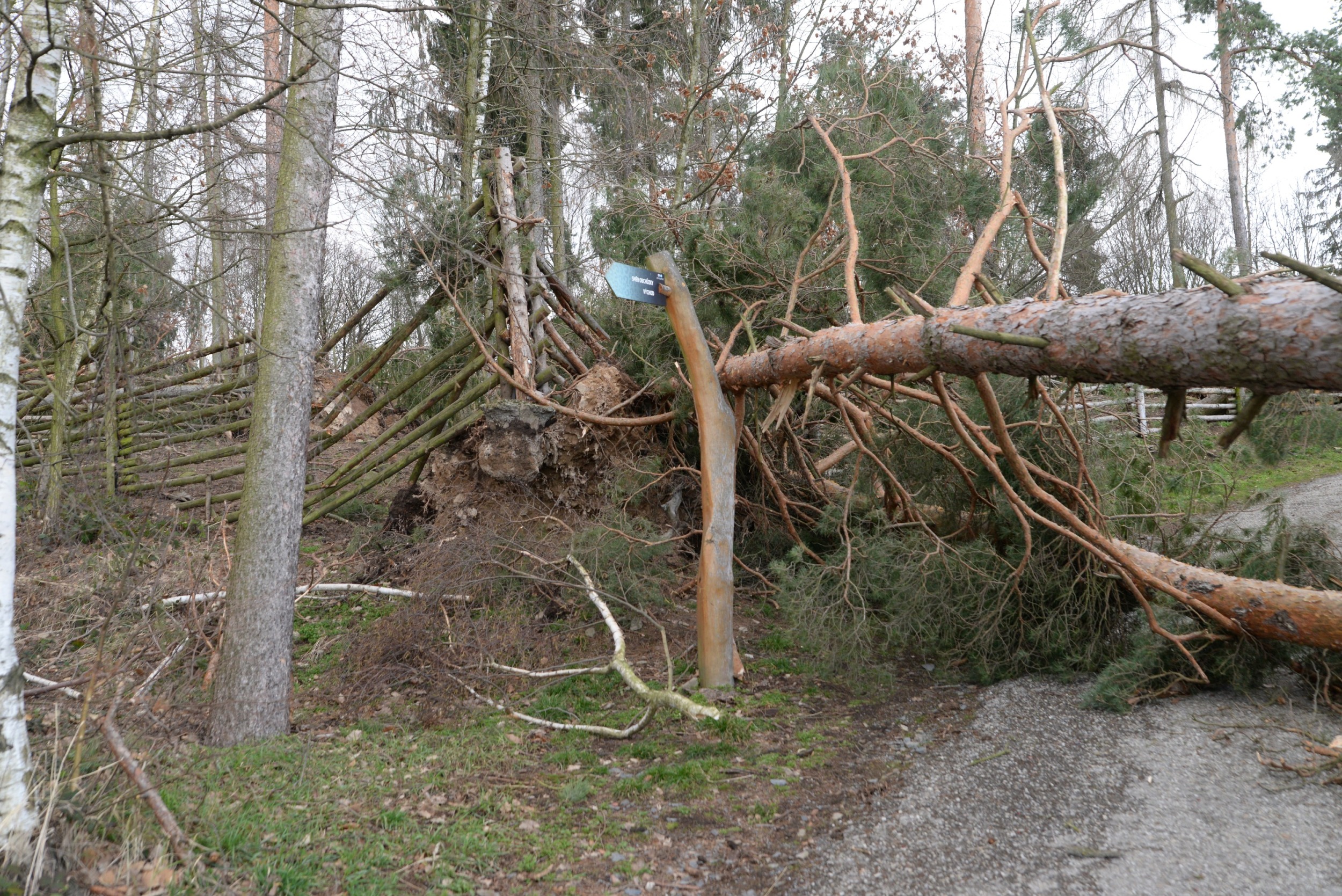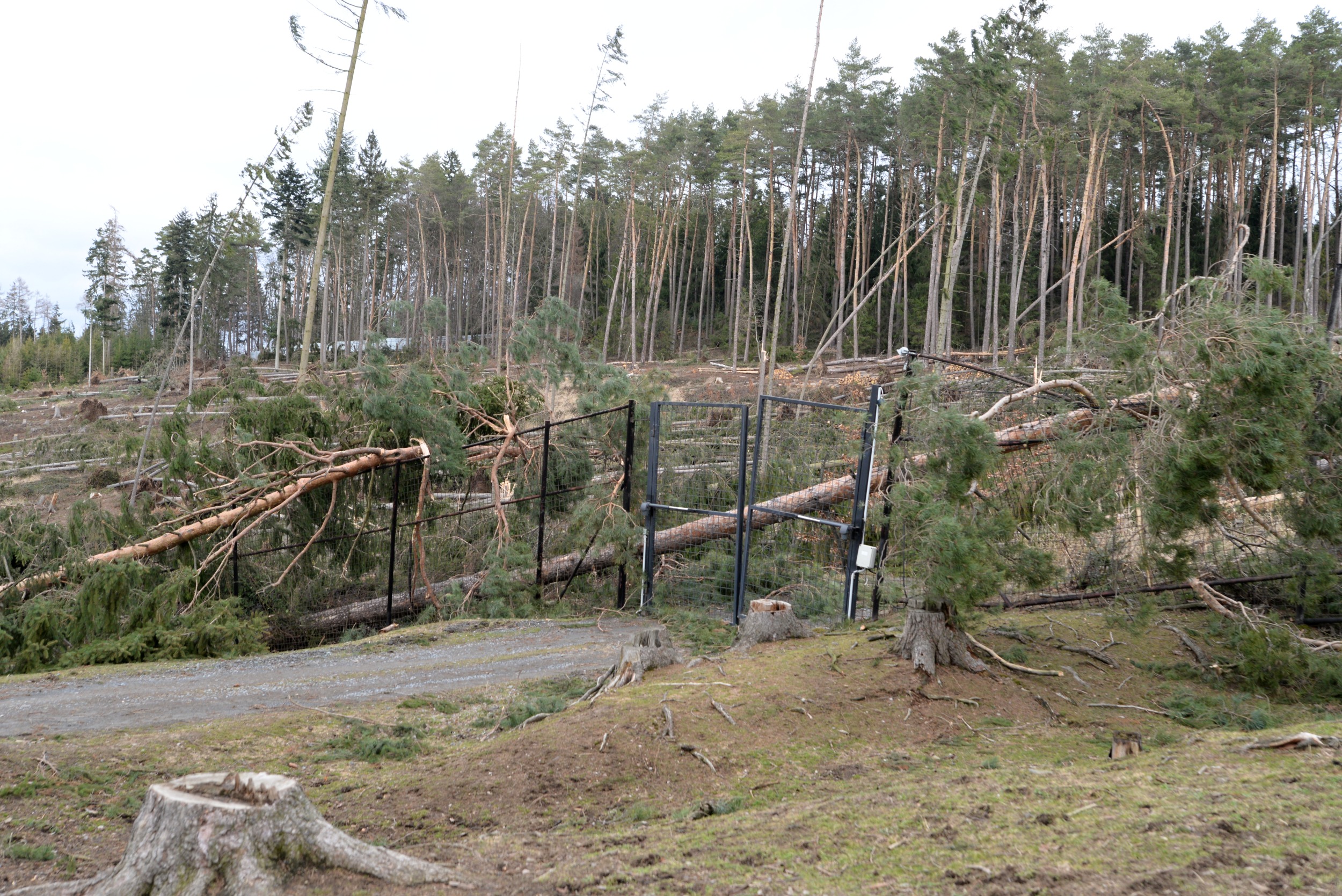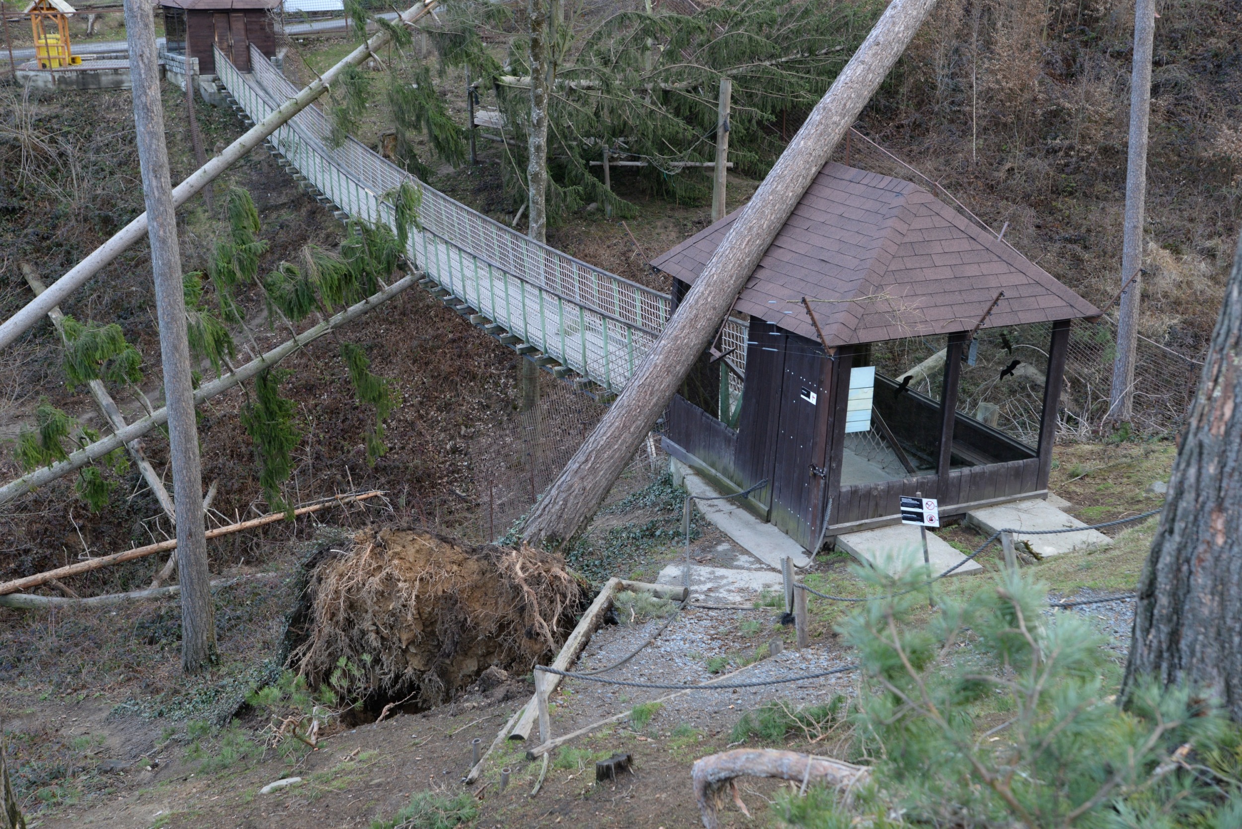 Po posledních dvou téměř jarních týdnech, kdy jsme se intenzivně snažili zahradu po zimě vyčistit a připravit na blížící se Velikonoce, naše plány zhatila noční vichřice. Areál zasáhla s větší silou než předloňská říjnová. Zahrada je stále ještě na několika místech neprůchodná, protože stromy leží přes cesty všemi směry. Poškozeny jsou i ploty několika výběhů a střechy na pár ubikacích. Všechna nebezpečná zvířata byla řádně zabezpečena a nedošlo k jejich úniku z ubikací. Výběhy opustilo jen menší stádo jelenů sika a daňci evropští, celkem v počtu 8 kusů. Zoo jsme dnes uzavřeli a o dalším vývoji budeme informovat.