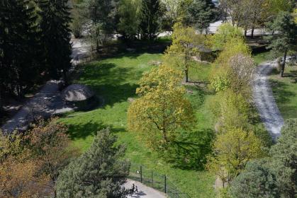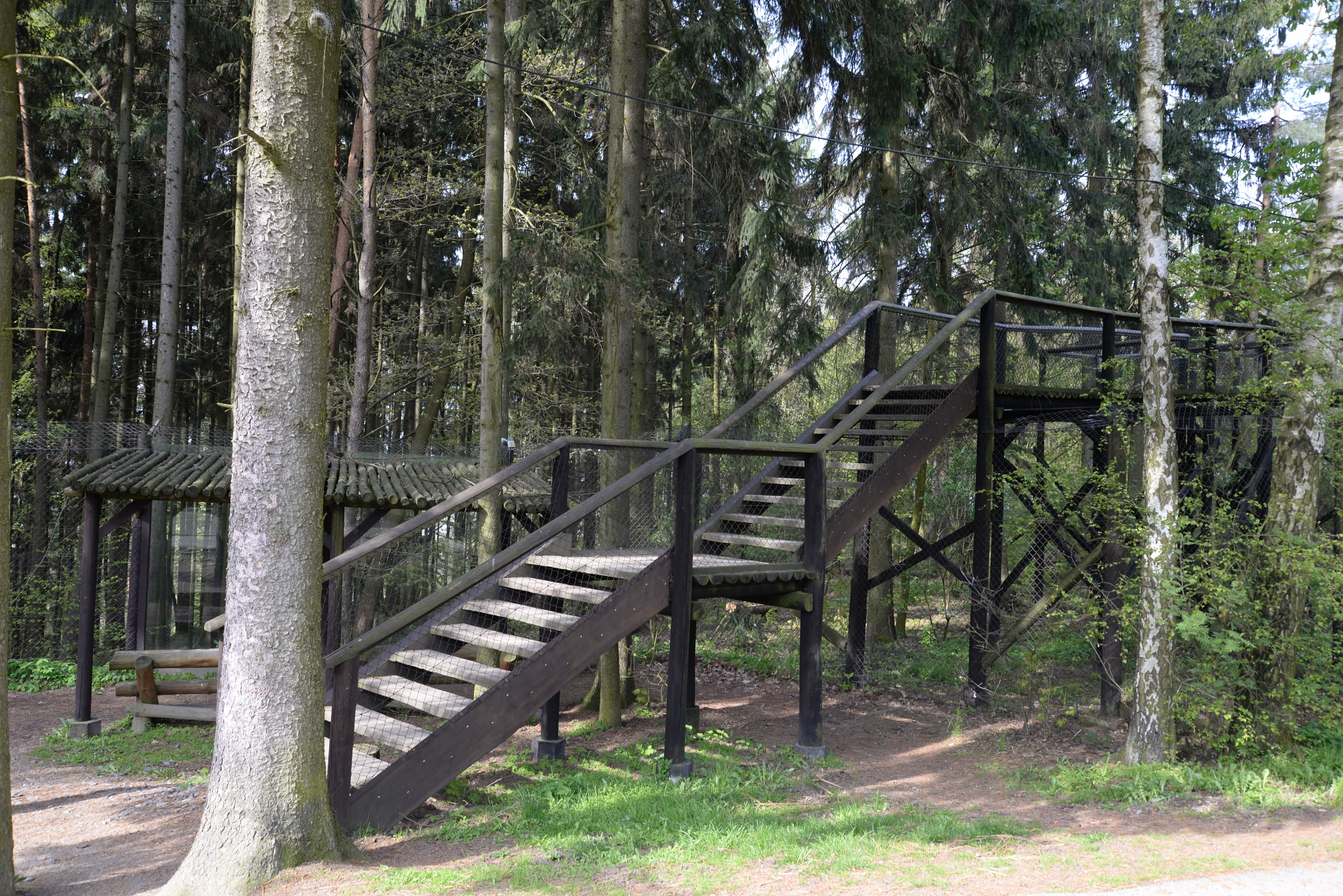 Chov rysů v naší zoo má dlouhou tradici. Rysinec z roku 1968 byla dřevěná stavba umístěná pod pavilonem šelem. Později musela ustoupit přestavbám a rysi se chovali v zázemí zoo i v ubikacích určených pro menší druhy koček na vrstevnicové cestě. V roce 2005 se vybudoval velký přírodní výběh určený k chovu těchto nádherných koček. Je umístěný ve smrkovém porostu naproti výběhu gepardů. Jeho součástí jsou dva výběhy s ubikacemi hrazené pletivem a elektrickým ohradníkem. Přes větší výběh původně probíhala lávka pro návštěvníky. Je zajímavé, že po vypuštění na podzim roku 2005 ani pracovníci zoo nemohli najít zde umístěné rysy. Samice se ukrývala v ostružiní tak dokonale, že ji šlo objevit jen s velkými obtížemi. V roce 2019 poničila vichřice oplocení výběhu natolik, že jej bylo nutné celkové zrekonstruovat. Výběhy byly zvětšeny a v přední části vznikla vyvýšená vyhlídka. Rysi se do výběhů opět vrátili v červnu 2020.