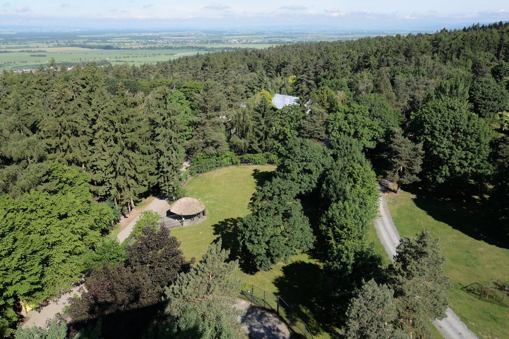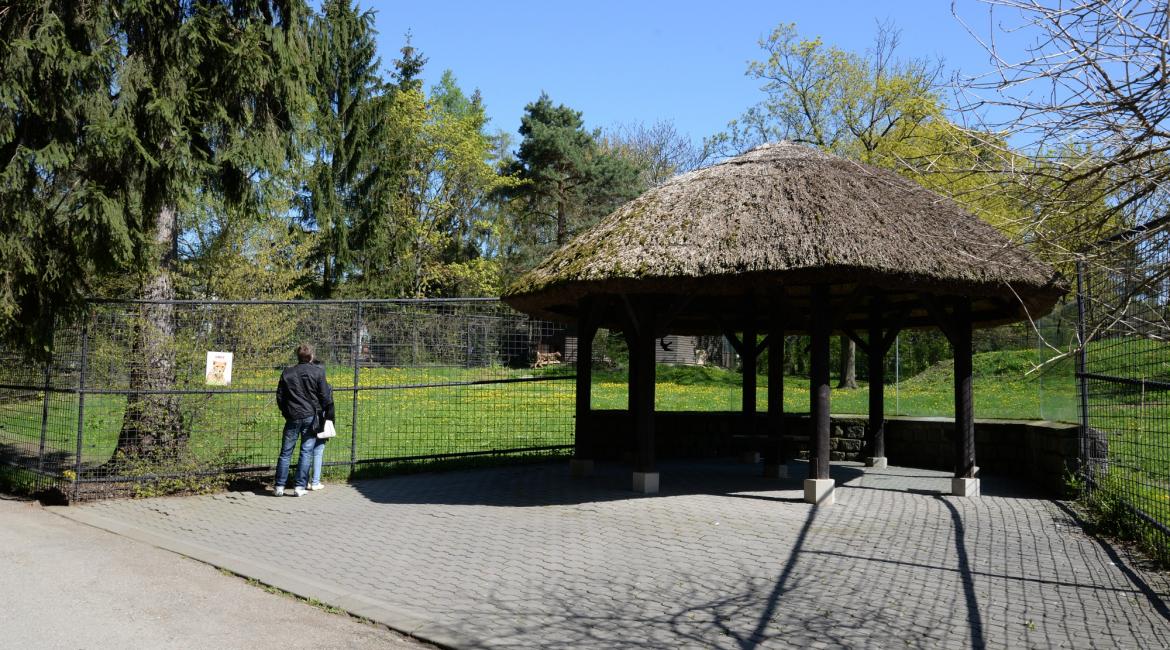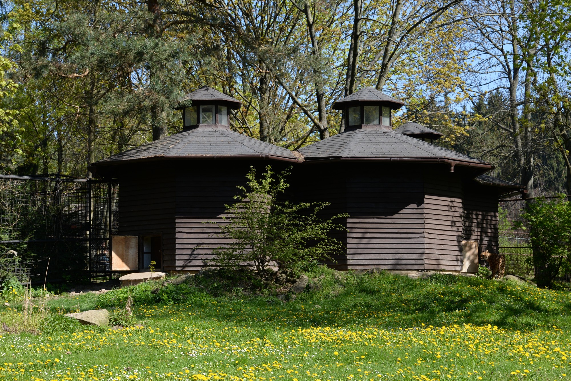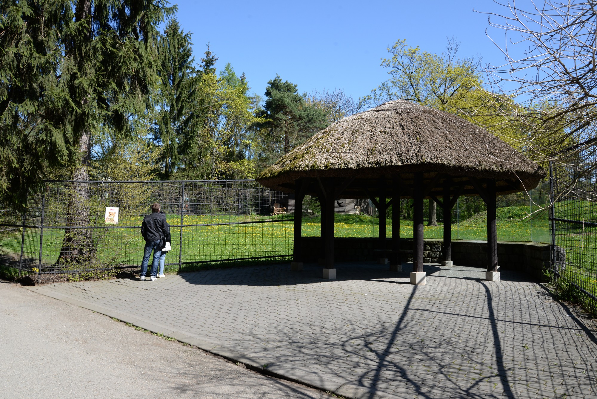 Za medvědincem po pravé straně obchůzkové cesty najdeme velký výběh určený k chovu gepardů. Jeho součástí je ubikace se třemi kotci a menší výběh pro gepardího samce. Celá stavba byla dokončena v roce 2000 na místě březového hájku. Součástí velkého výběhu je prosklená vyhlídka s posezením a originální rákosovou střechou. Původně zde měl podle generelu ze šedesátých let stát pavilon exotických savců a ptáků. Později se na tomto místě uvažovalo o dostavbě druhého výběhu pro medvědy.