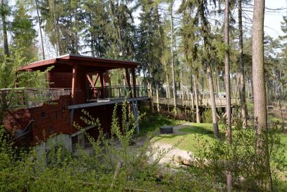 Na místě bývalého výběhu jelenů vznikl v letech 2009 - 2010 na ploše přibližně jednoho hektaru společný výběh pro medvědy baribaly a vlky arktické, jaký nemá v současné době v naší republice obdobu. Je situován do členitého kopcovitého terénu porostlého smrkovým lesem s protékajícím potůčkem a jeho prostředí svým vzhledem připomíná původní domovinu těchto krásných šelem pocházejících ze Severní Ameriky. Areál je tvořený společnou částí, ve které se oba druhy mohou vzájemně potkávat, a dvěma výběhy určenými jen pro vlky. Do nich se vlci mohou uchýlit a odchovávat zde svá mláďata v umělých norách, které jsou postavené v jednom z nich. Stavba, v níž je pro medvědy k dispozici pět vnitřních ubikací včetně přípravny, je zapuštěna do terénu a souzní s okolní přírodou. Návštěvníci mají hned několik možností jak dění ve výběhu pozorovat. Nad ubikacemi pro medvědy vznikl dřevěný srub, sloužící jako vyhlídka, na něj navazuje dřevěná lávka vedoucí několik desítek metrů okolo výběhů medvědů i vlků. Další dvě vyhlídky jsou umístěny u obou vlčích výběhů. Celý tento komplex byl slavnostně otevřen v červnu 2010.