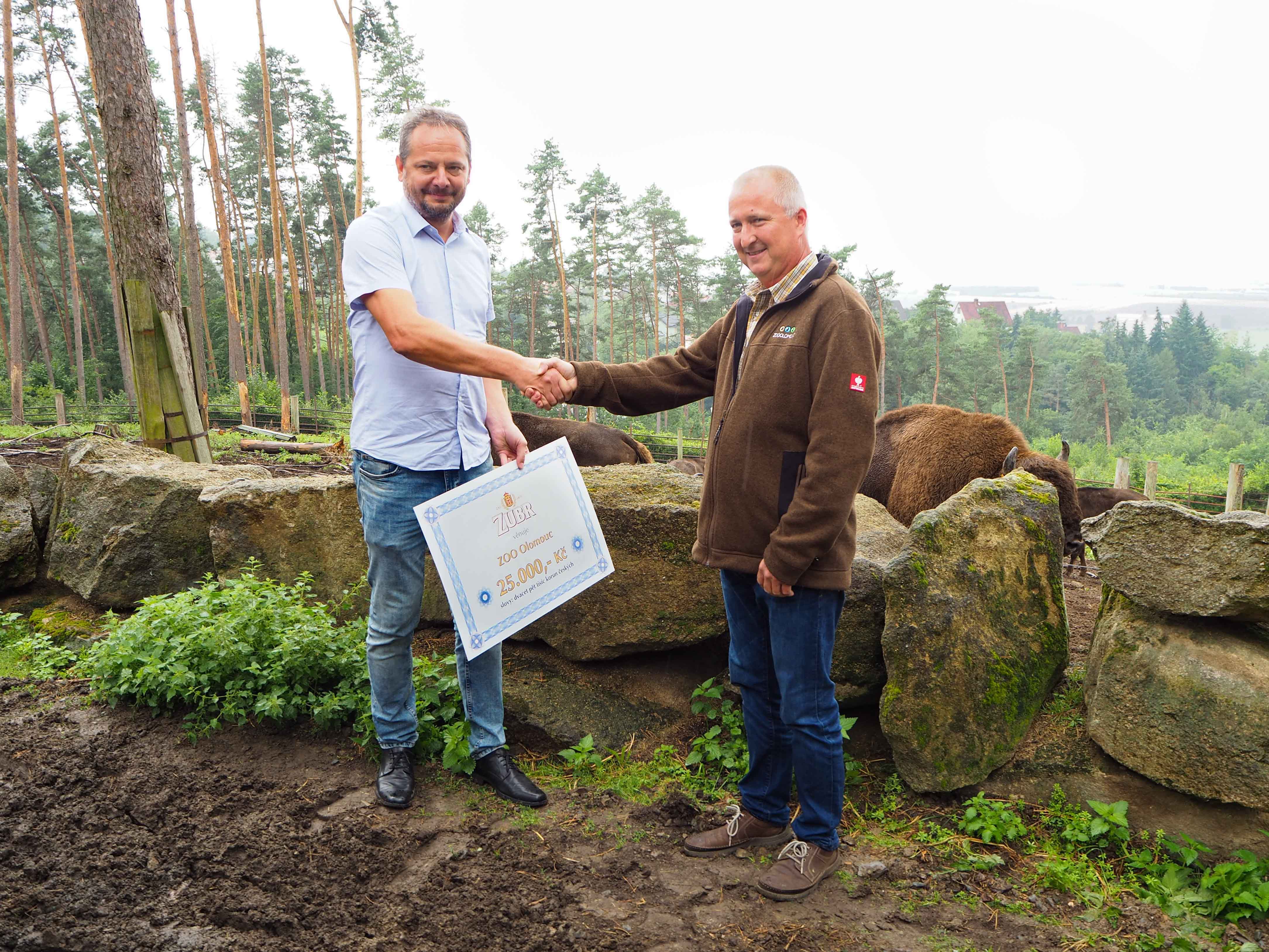 Zubr je významným zvířetem nejen pro milovníky zvířat. Zubří hlavu s houžví v nozdrách nese ve znaku město Přerov, ale také i místní pivovar. Právě ten se stal novým patronem zubrů v olomoucké zoo. Dnes došlo k setkání zástupců síly zvířecí a síly chuti. „Těší nás, že můžeme touto cestou přispět k pokračování chovu ohrožených zubrů. Toto majestátní zvíře je ve znaku našeho pivovaru již téměř 150 let a doufáme, že díky skvělé péči Zoo Olomouc i dalších chovatelů, kteří usilovně pracují na tom, aby tento druh přežil, budou moci lidé nadále zubry obdivovat nejen na stránkách encyklopedií. Připíjíme na zdraví zubrů a všech, kteří se o ně starají,“ říká ředitel pivovaru Tomáš Pluháček. Ten dnes předal zahradě symbolický šek v hodnotě 25 000 Kč. Sílu chuti piva Zubr si mohou vychutnat i návštěvníci zoo při své návštěvě, čepuje se ve stáncích s občerstvením.